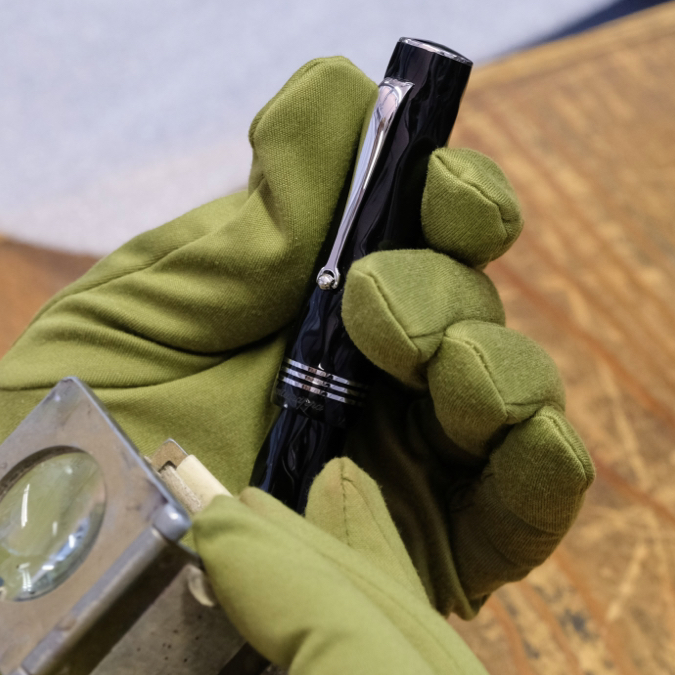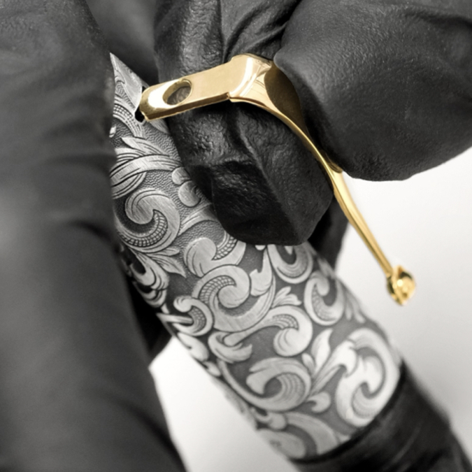 Die filigree-Gravur, die in unsere Federn eingraviert ist, ist ein Stilmerkmal, das seit über einem Jahrhundert für Eleganz steht. Die miteinander verbundenen Achtecke erinnern an Reminiscence (1915), unseren ersten serienmäßig hergestellten Füllfederhalter.