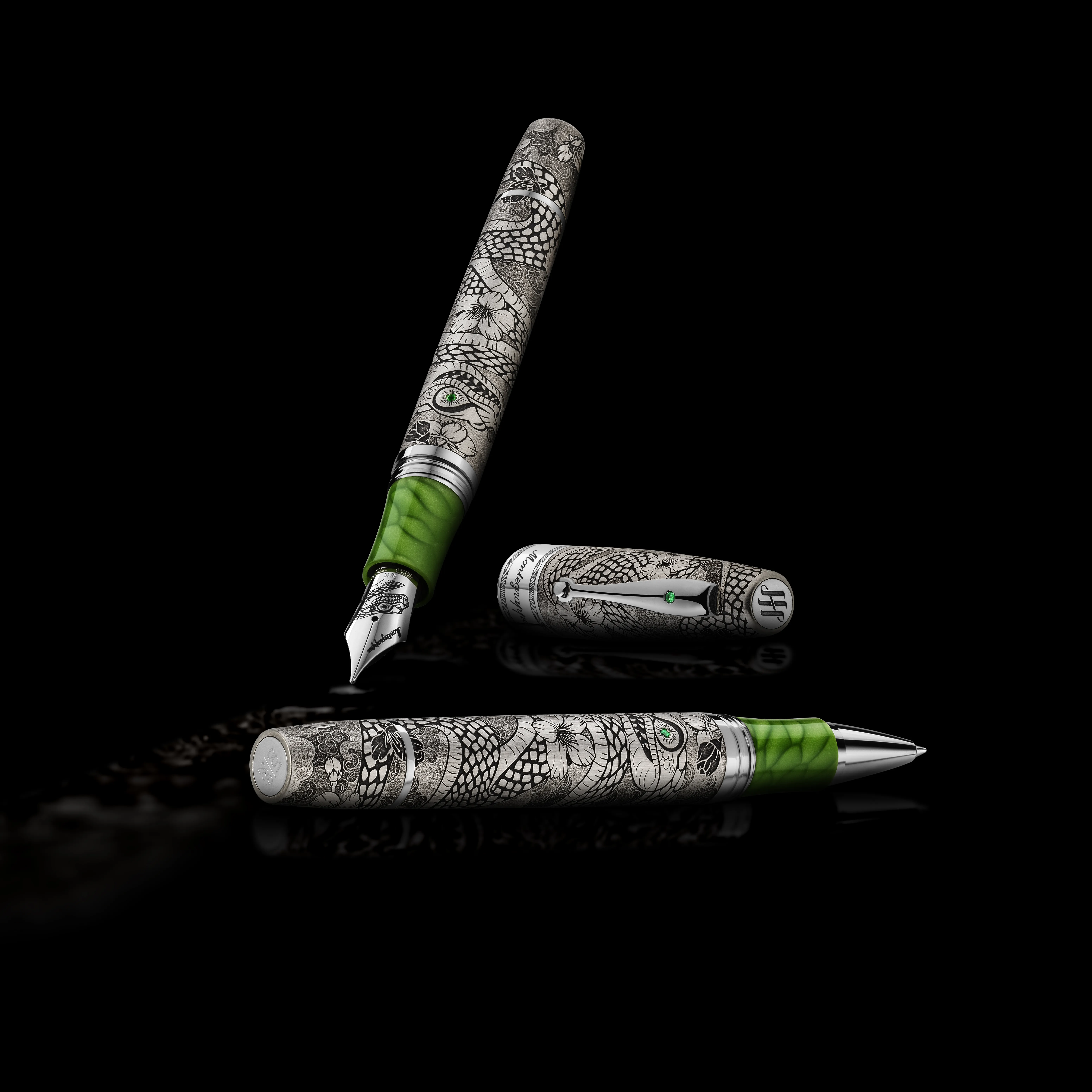 Die Glückszahlen 2, 8 und 9 bezeichnen eine Auflage von 289 Füllfederhalter- und Tintenroller Exemplaren mit Hochpräzisionskolbenfüllung und einer speziellen „Crazy Eye“-Feder aus 18 Karat Gold.