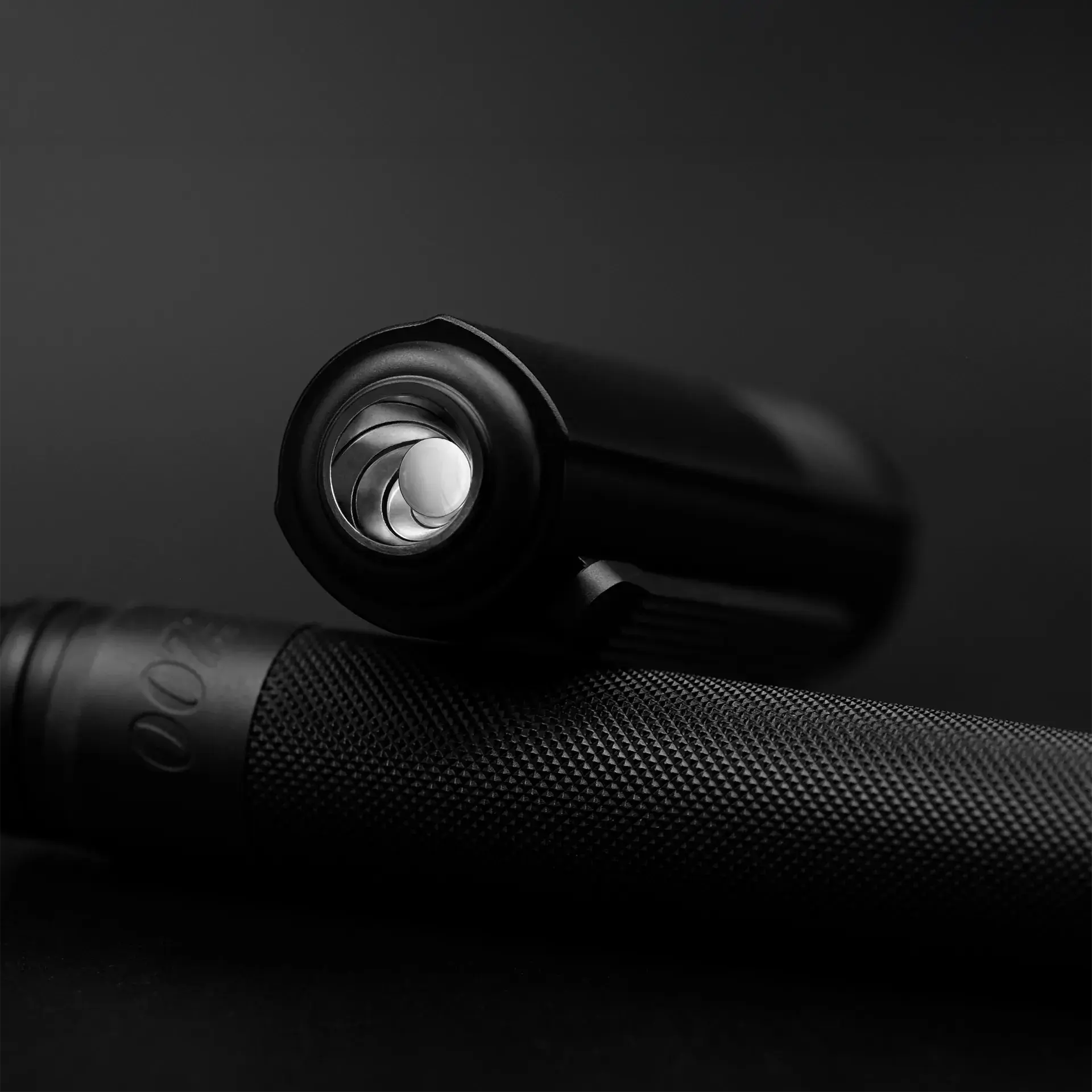Minimalistische Details und ein dezenter, unauffälliger Clip runden das schlichte, ganz in Schwarz gehaltene Design ab. Die schwach reflektierenden Oberflächen sind an den entscheidenden Griffstellen präzise verarbeitet.