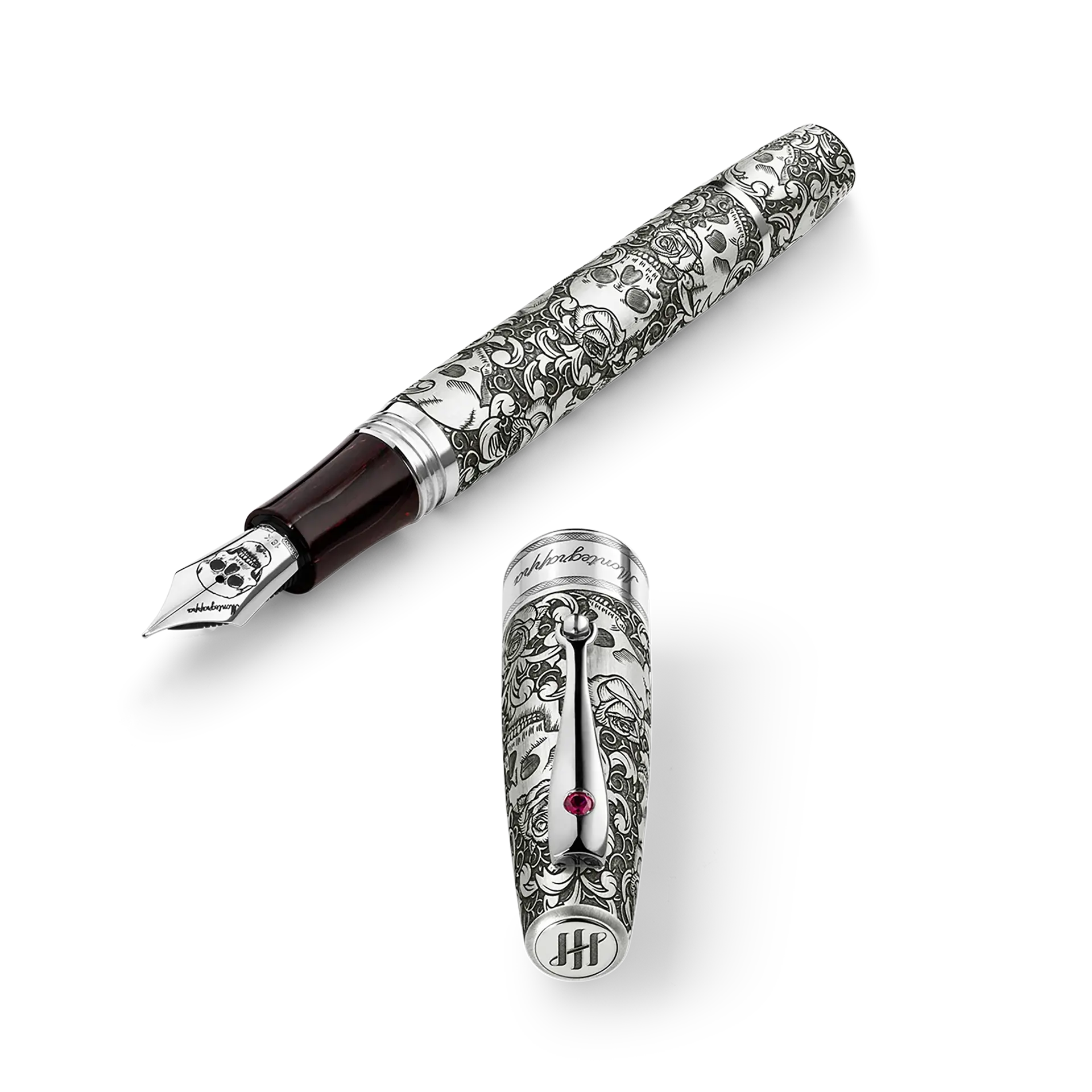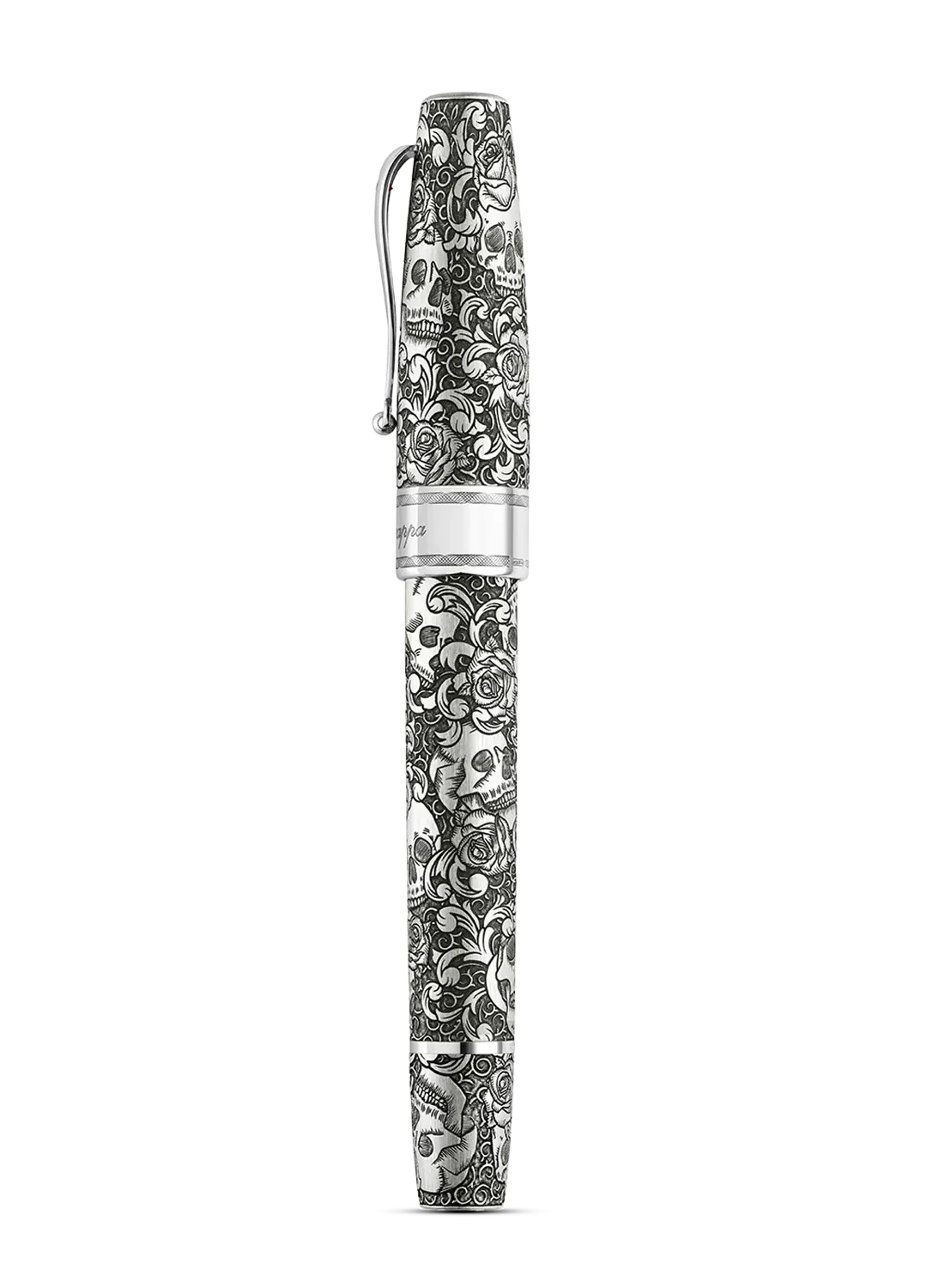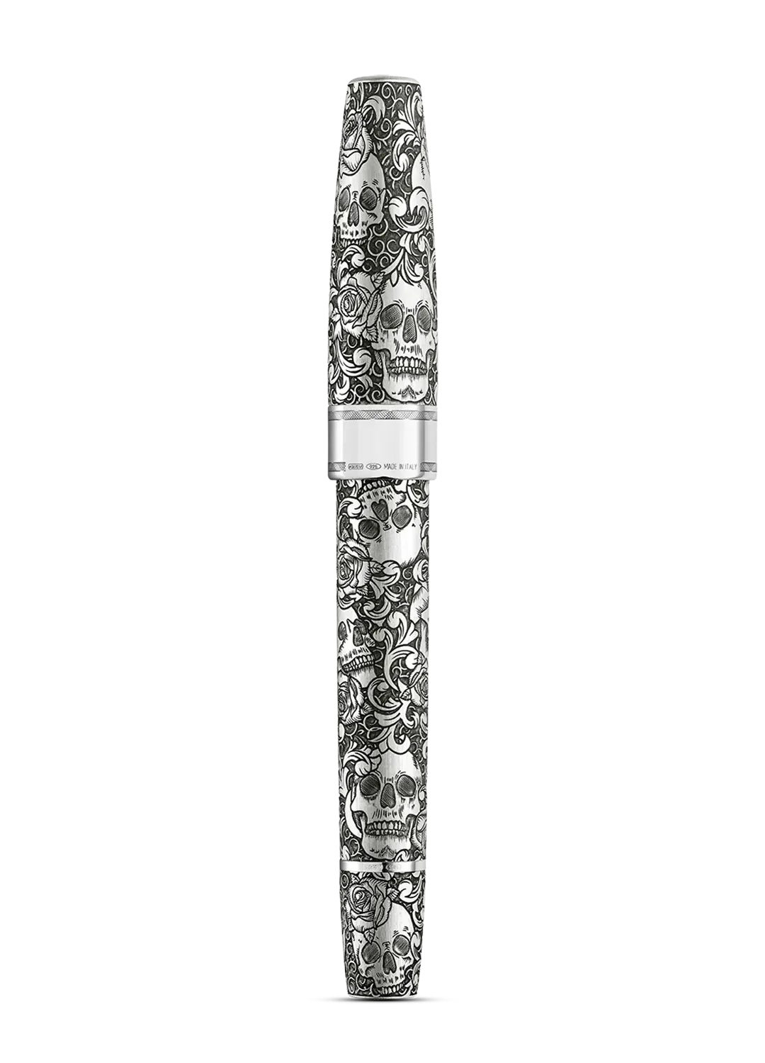 Das komplizierte Ganzkörpertattoo der Edition wird durch fortschrittliche, mehrachsige Gravur erzielt. Vollständig in Sterlingsilber eingehüllt, hinterlassen das von Hand angelaufene und satinierte Finish einen subtilen „eingetragenen“ Effekt.