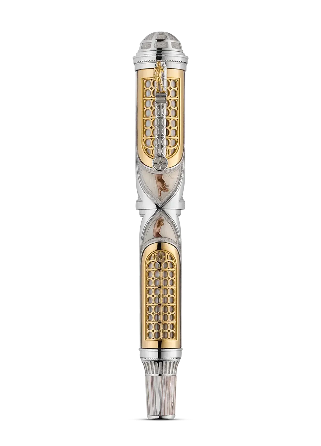 Michelangelos David – von Vasari als „die schönste Skulptur aller Zeiten, der Antike wie der Moderne“ gepriesen – ist in Mikroguss auf dem Clip verewigt. Die Kuppel, die die Kappe der Schreibfeder krönt, erinnert an das florentinische Oberlicht, das eigens entworfen wurde, um in der Tribuna die Vollkommenheit seiner Formen mit zenitalem Licht zu beleuchten.
