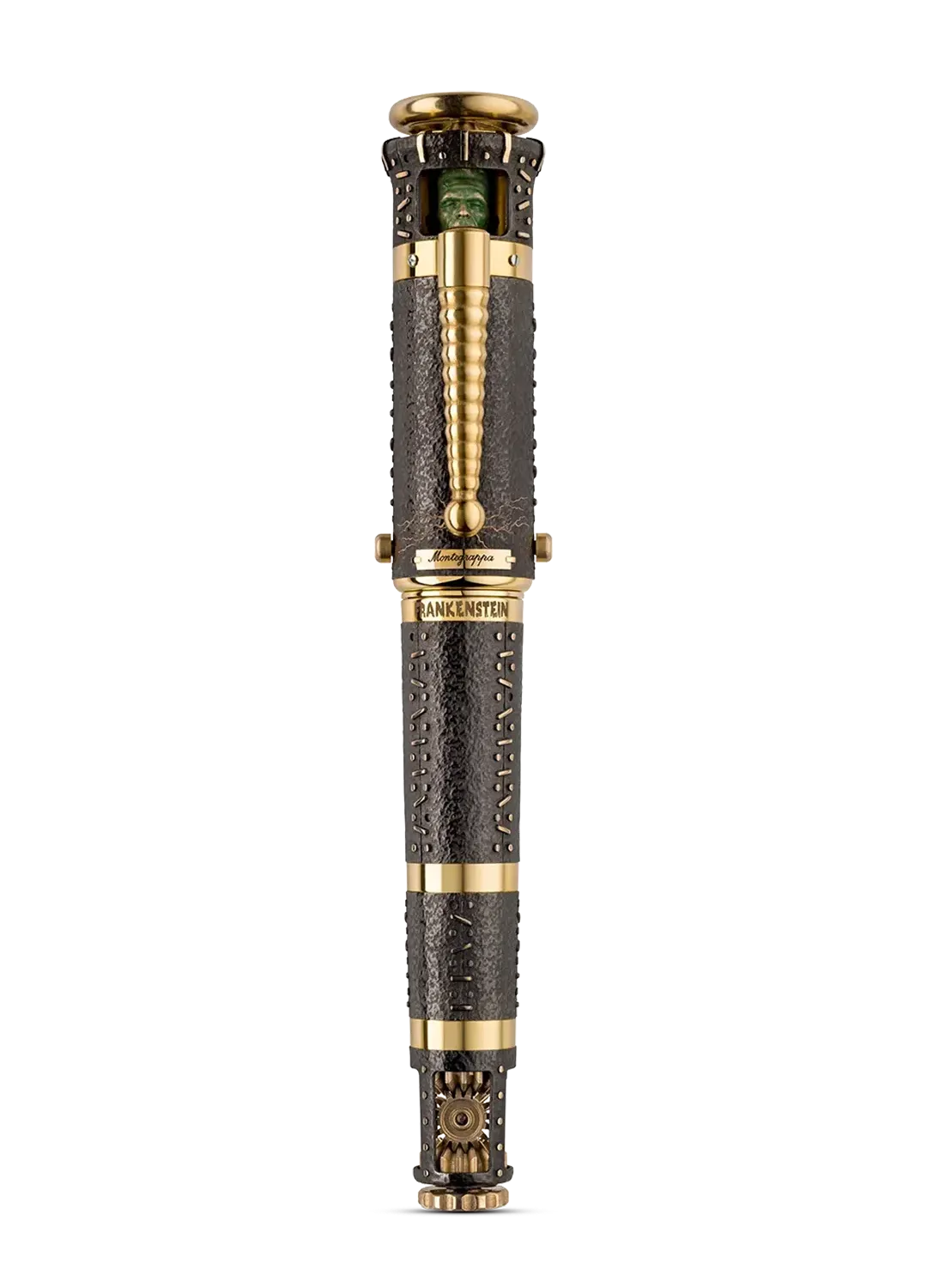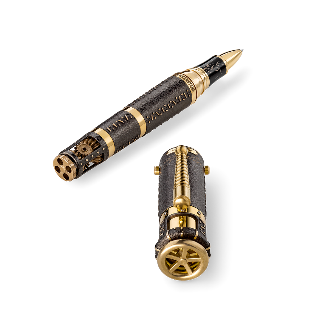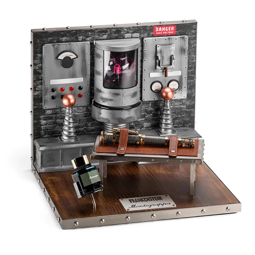 Der Zauber des Films wird mit düsterer Galvanik und kinetischen Konstruktionen auf das Schreiben übertragen. Hinter scheinbar verrückter lo-fi Wissenschaft verbirgt sich das geniale mechanische Prinzip des Power-Push Füllsystems.