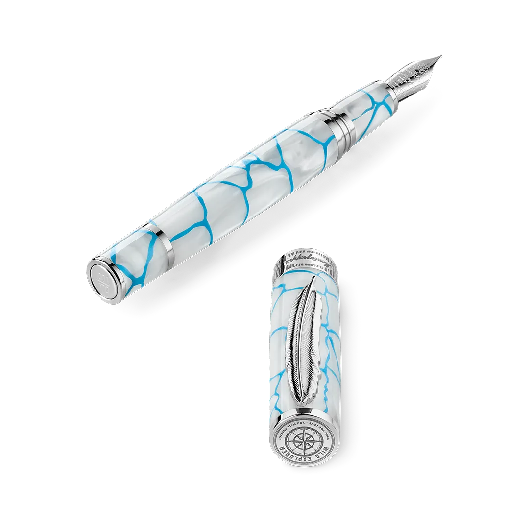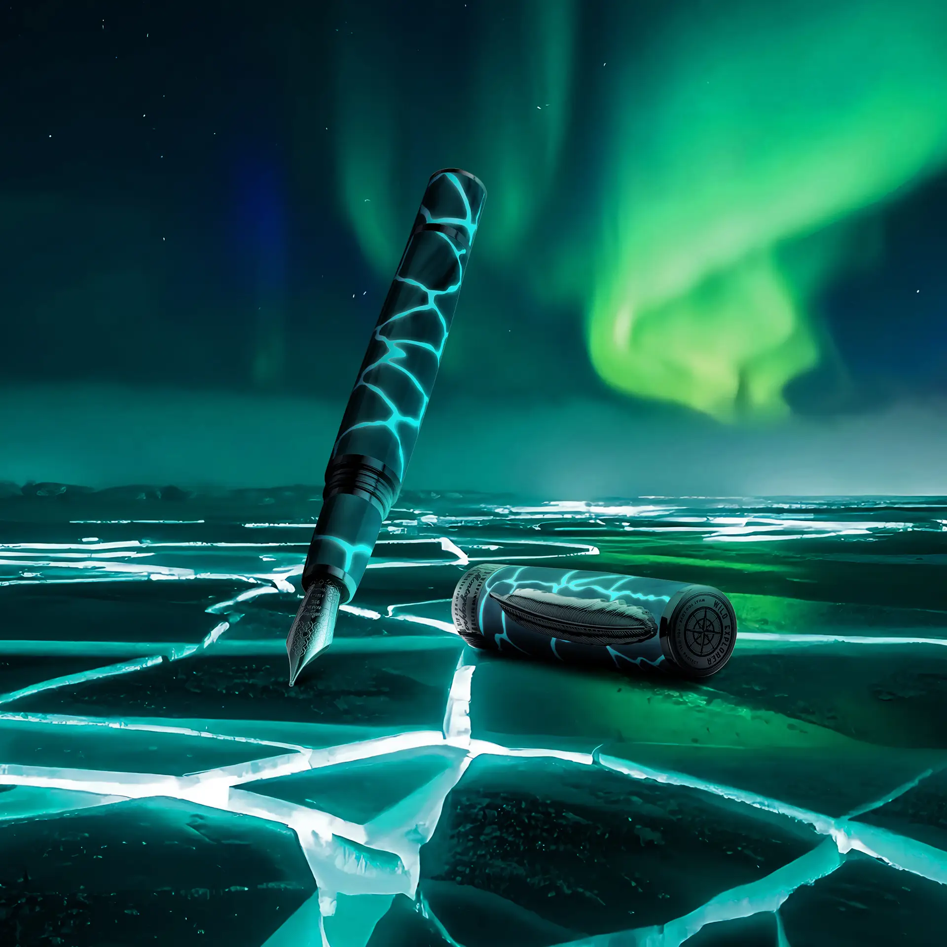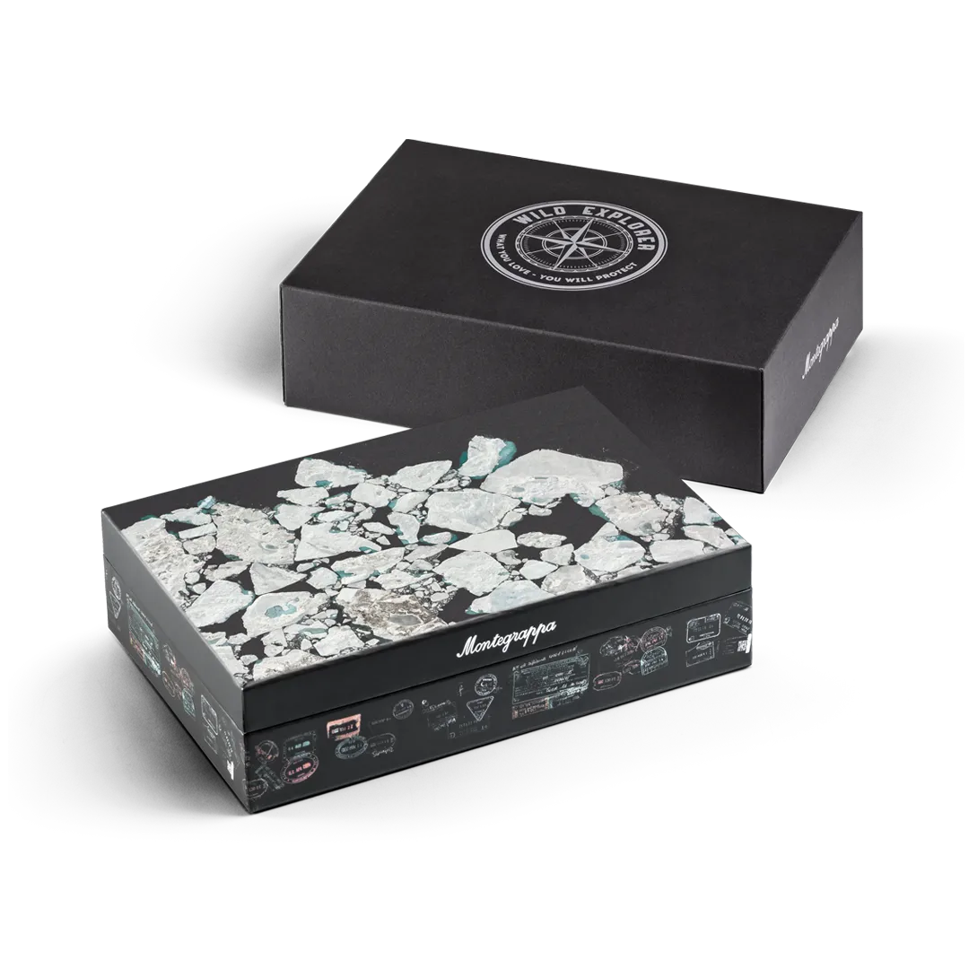 Gefertigt aus Harz, das mit Super-LumiNova angereichert ist, macht dieses innovative Material die Schreibgeräte lichtempfindlich: Im Dunkeln leuchten sie und bringen die Formen und Konturen zum Vorschein, die die ätherische Landschaft der Arktis prägen und feiern.
