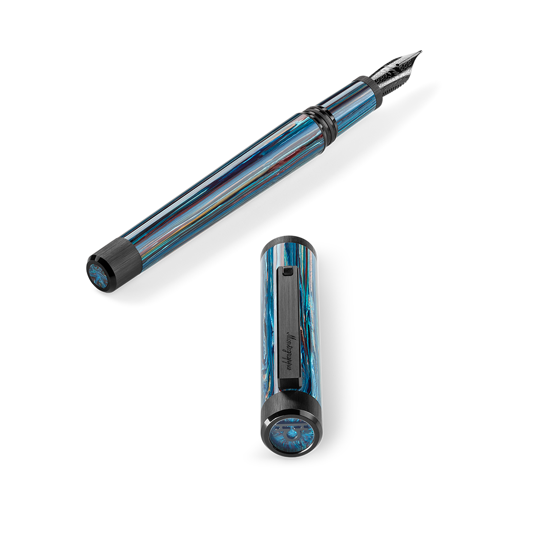 Durch die Mischung kleiner Mengen gefärbter Harze entstehen komplexe Texturen aus Montegrappite, wie sie nur die Natur hervorbringen kann. Bei ihrer Herstellung spielt das kosmische Gleichgewicht eine Rolle: Die handwerkliche Fertigung sorgt für weniger Reststoffe, durch deren Wiederverwendung immer neue und einzigartige Mischungen entstehen.