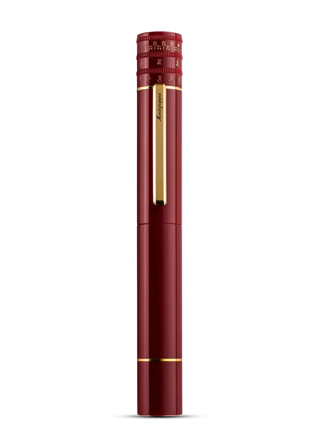 Three notched dials adjust date, day and month with haptics and mechanical locking adopted from our acclaimed ratchet piston-fill mechanism.