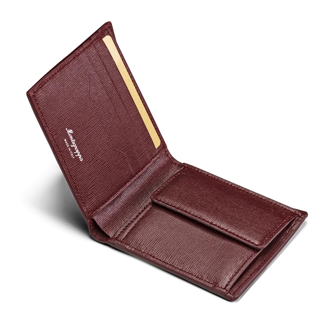 Signet Series Coin Case Wallet, Bordeaux Saffiano Leather