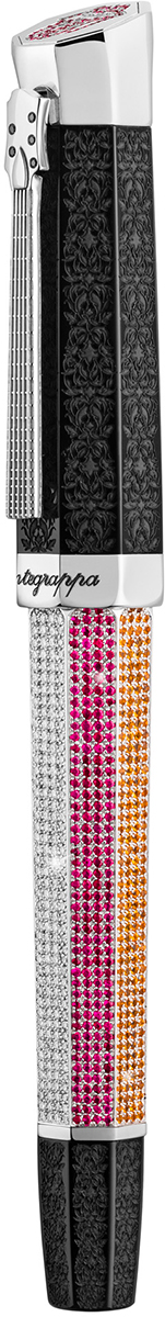 Icons of rock royalty: Mick’s flamboyance; Keith’s signature 5-string playing style; the Classic Tongue emblem. Precious metals and audacious, handcrafted flourishes reproduce symbols of Stones supremacy.