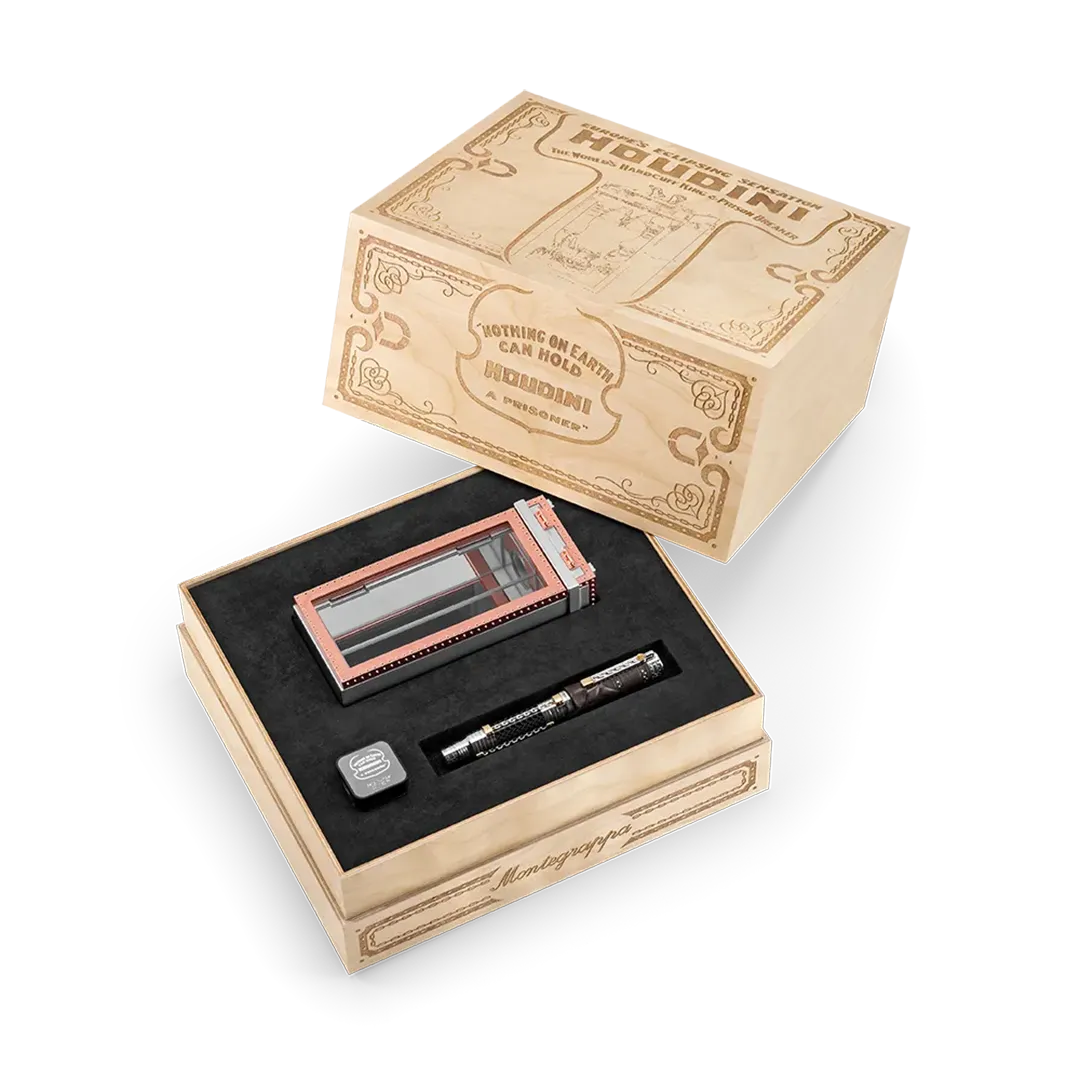 Synonymous with magic, Houdini’s name shines brighter than every other performer of his era. 150 fountain pens and rollerballs salute the Master Mystifier’s charisma, courage and the power of spectacle.