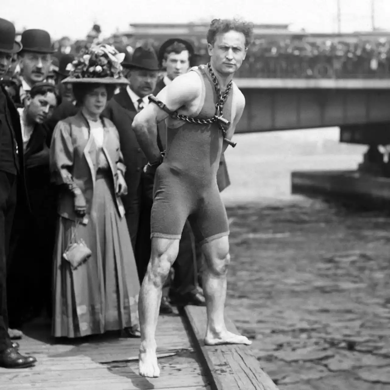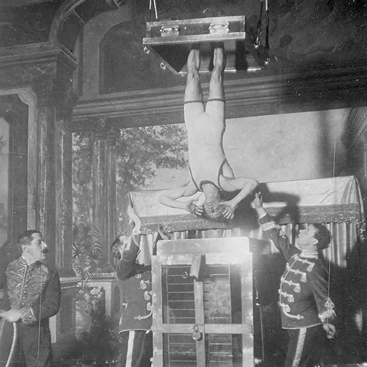 Houdini’s signature routine was almost as breathtaking to behold as it was to perform. A desktop replica of his iconic water-torture cell recreates the enigma with old-school theatrics.