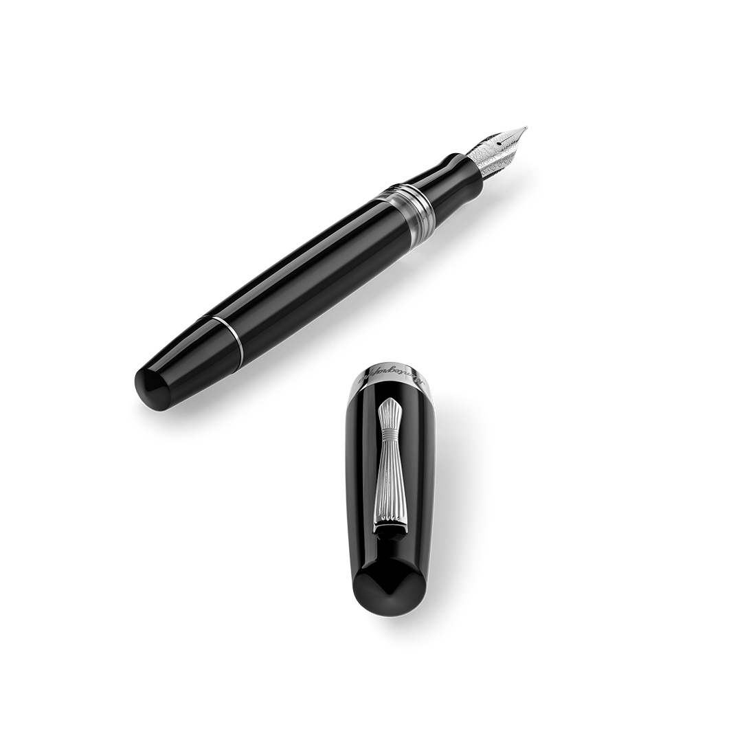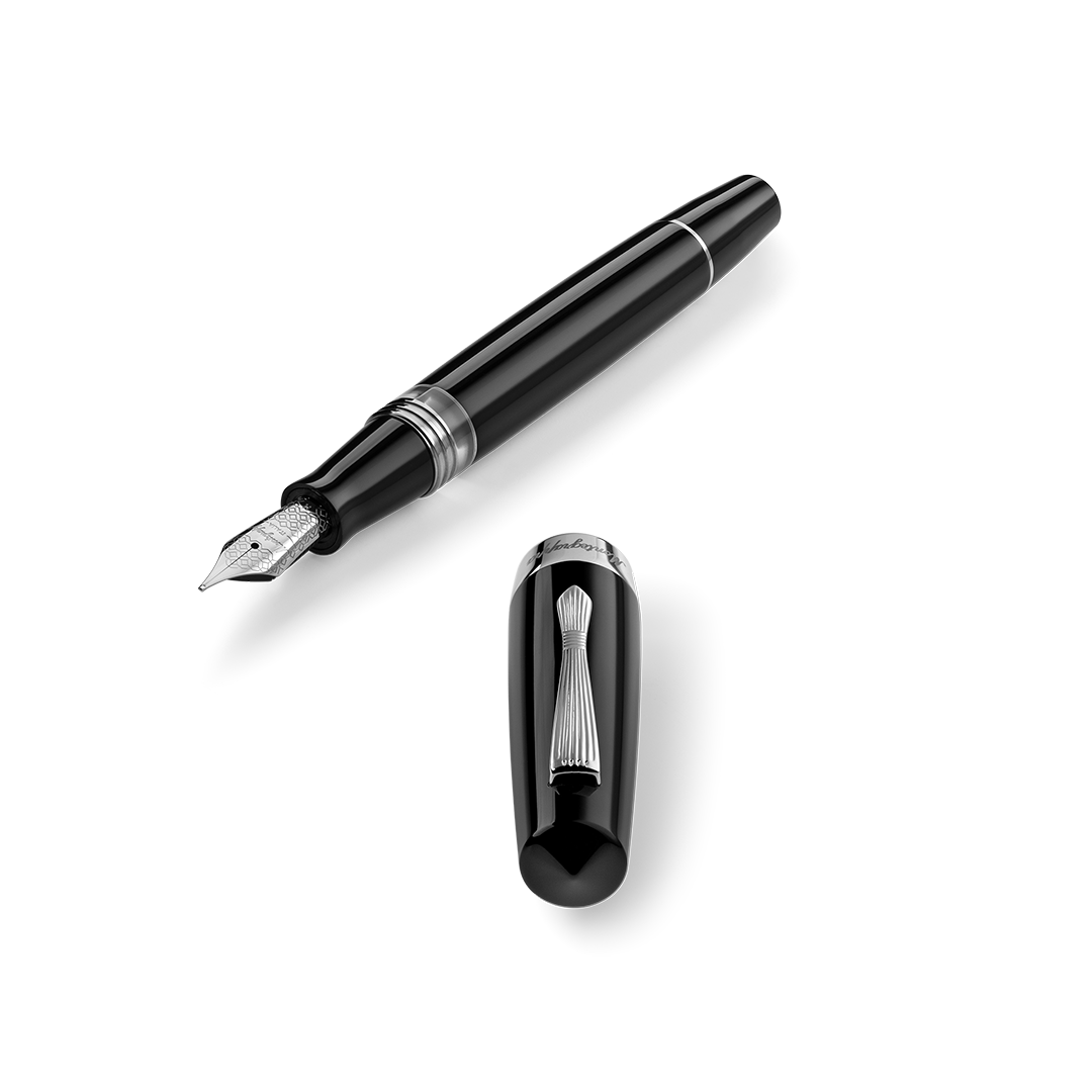 Because even marathon writing sessions must end, an integrated 360º control window shows when reserves are running low. Modern writing comforts encompass a democratic selection of nibs on three tiers.