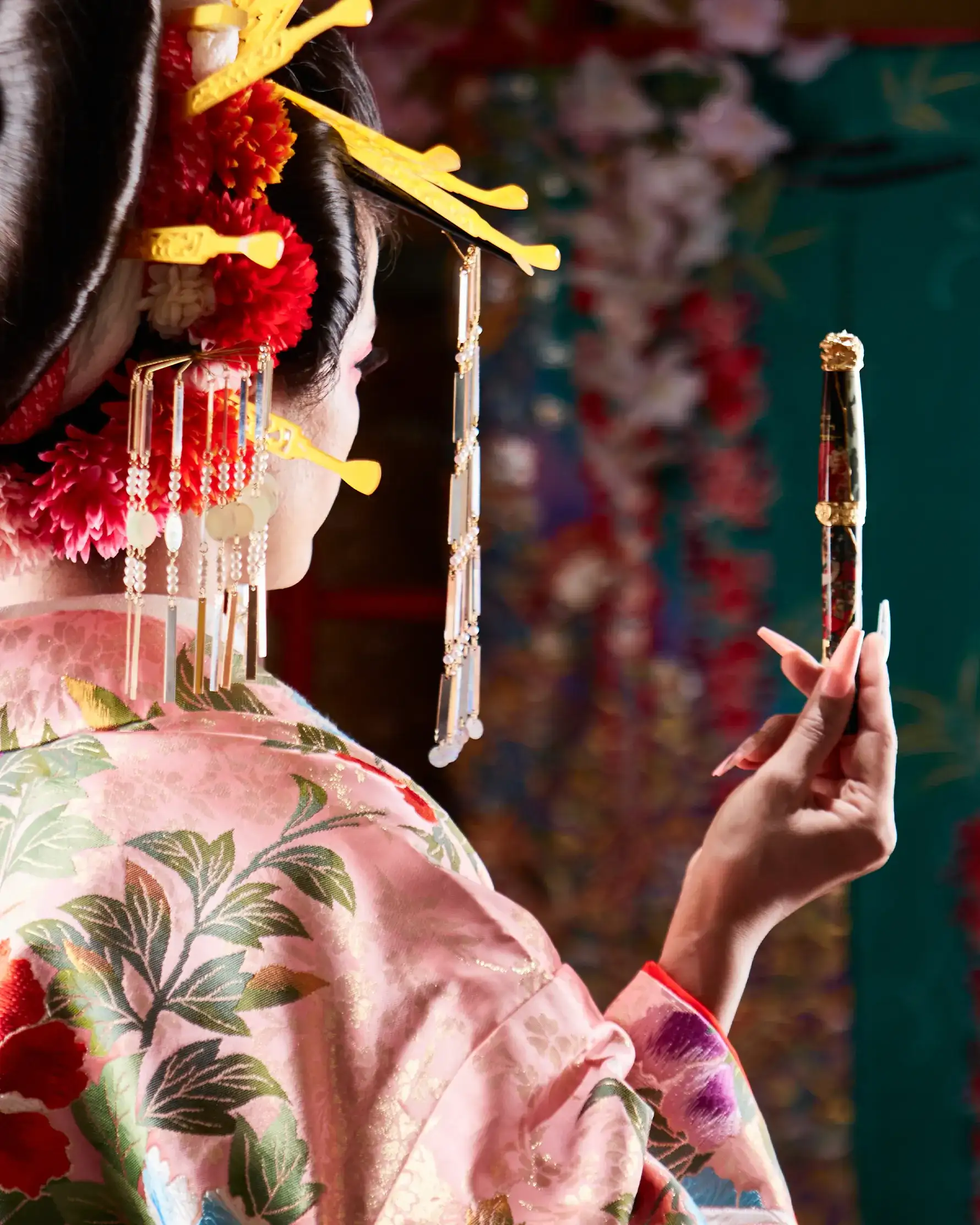 Design informed by Ukiyo-e, Kintsugi and Kabuki explores the parallels between western and eastern storytelling. A gleaming shishi figure assumes the protector role of Cocteau’s fabled Beast.