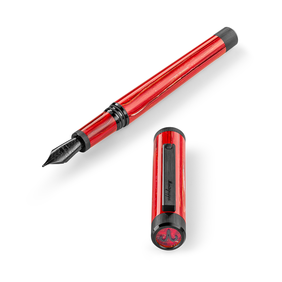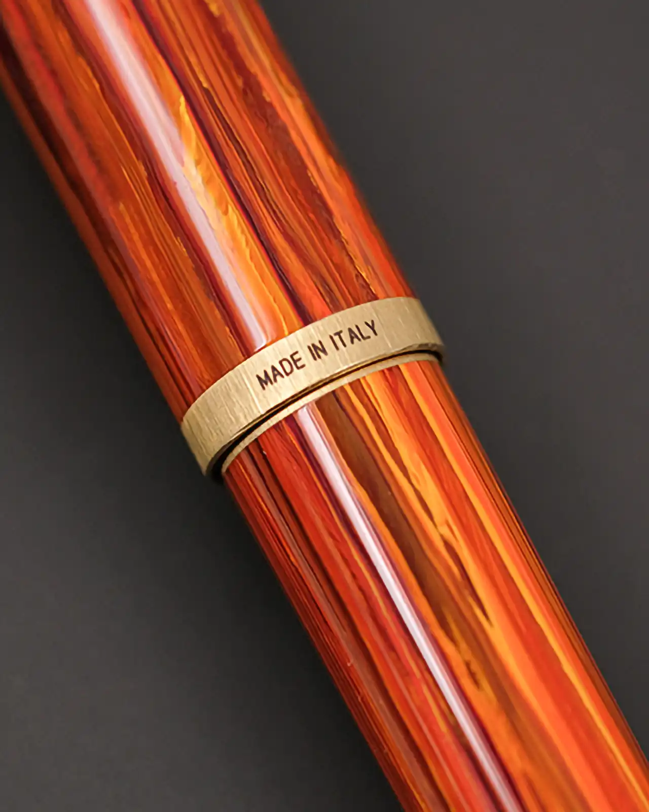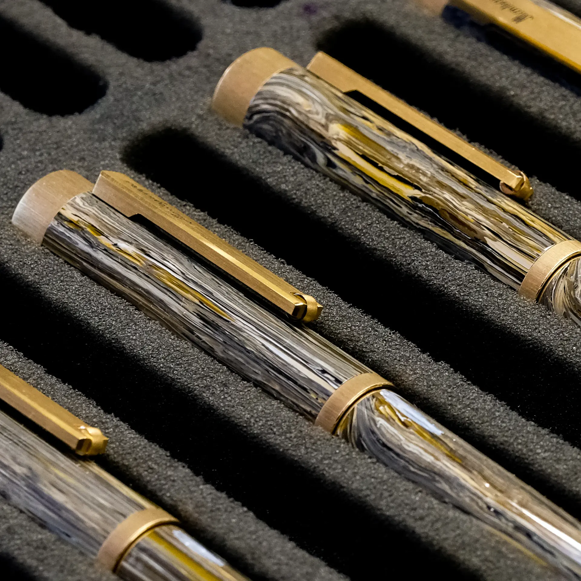 Boutique blending of coloured resin results in complex Montegrappite textures only nature can design. Cosmic balance plays a part in their creation: artisanal production leads to reduced waste and new recycled blends.