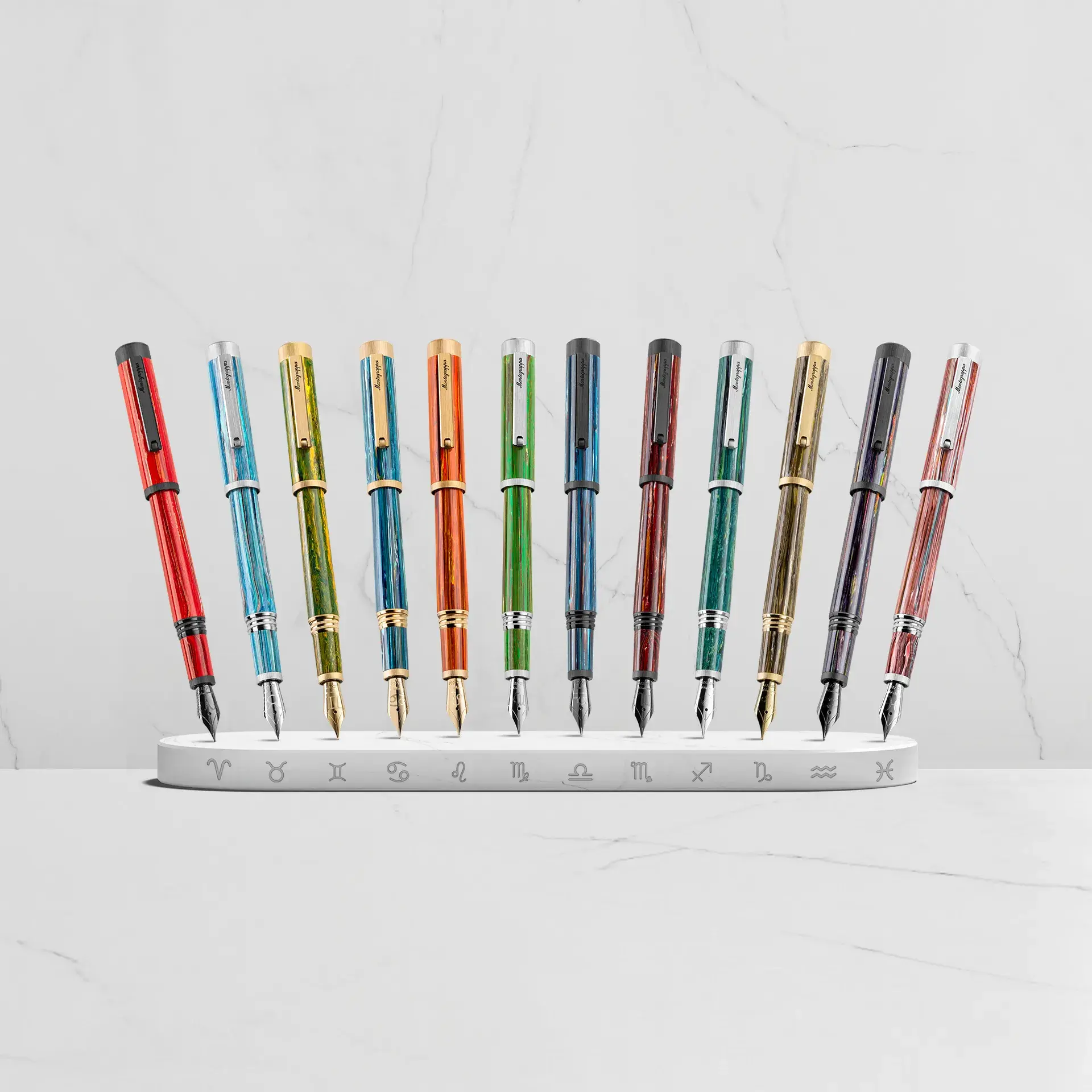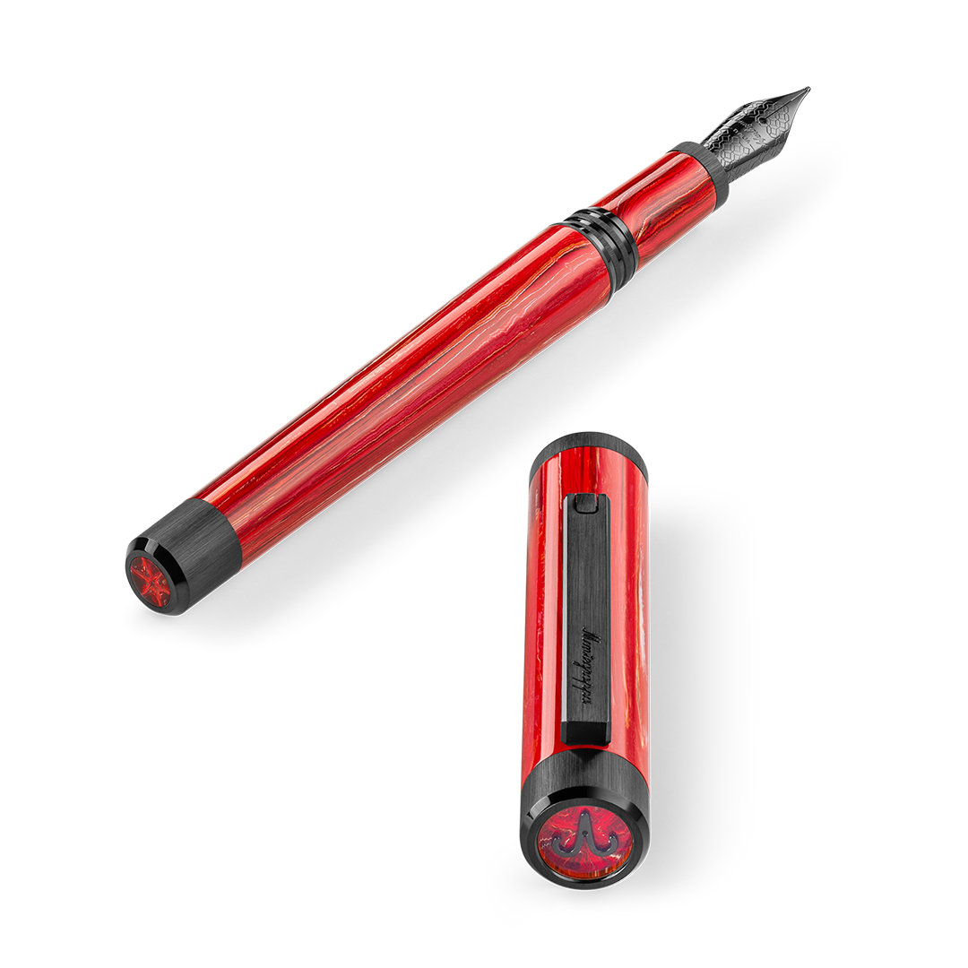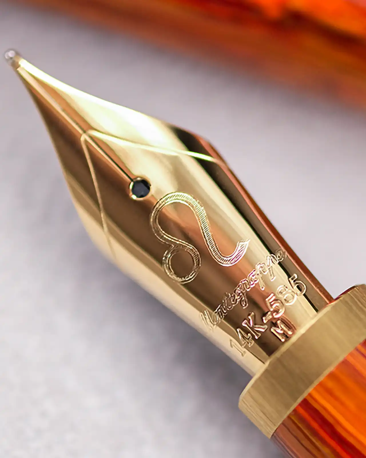 Boutique blending of coloured resin results in complex Montegrappite textures only nature can design. Cosmic balance plays a part in their creation: artisanal production leads to reduced waste and new recycled blends.