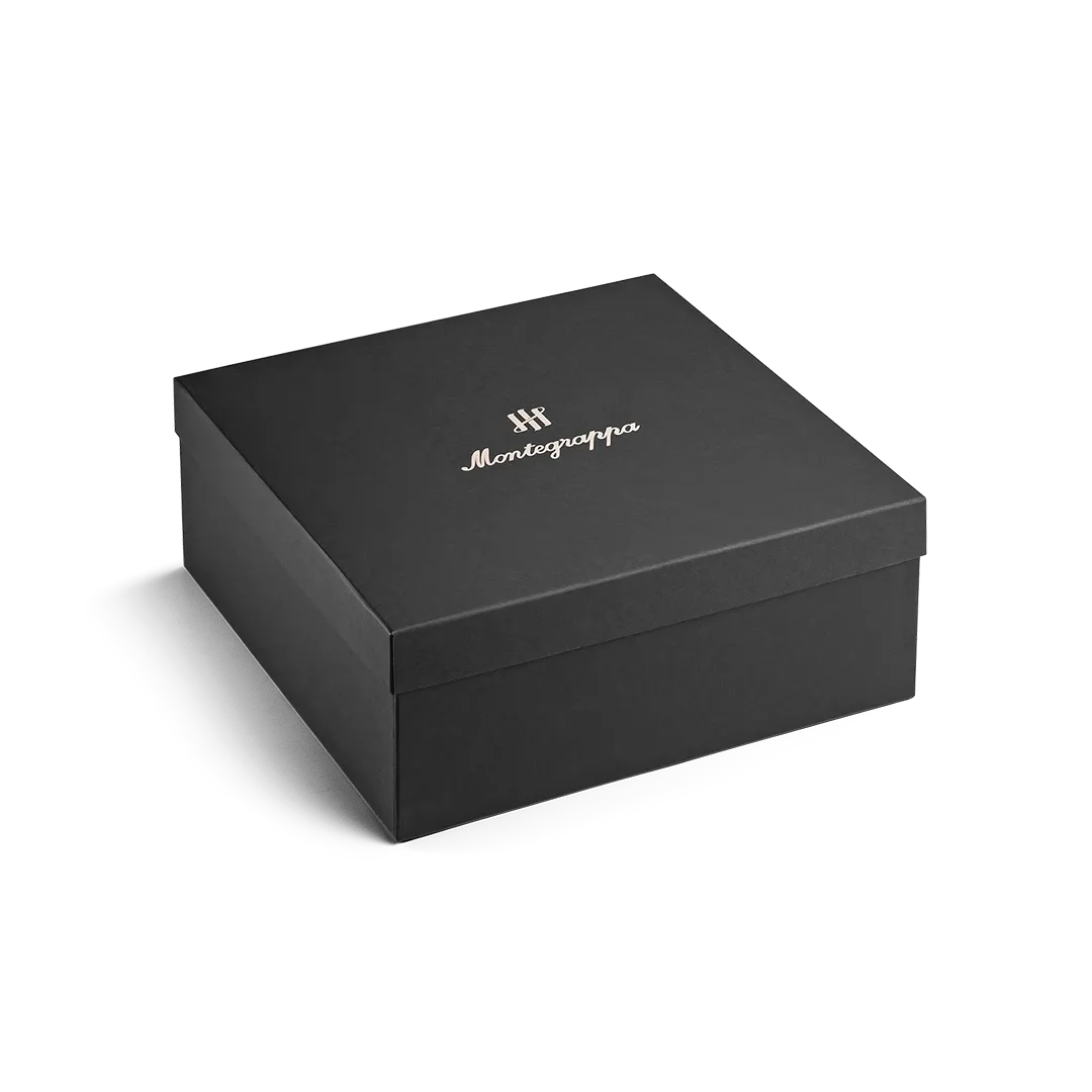 Made from extra-fine virgin wool, SCUDERIA pays tribute to form, direction, and the beauty of balance. At the heart of the design, the Montegrappa Ambigram becomes both compass and signature, while the blanket-stitch border and structured weave express the quiet strength of refined design.