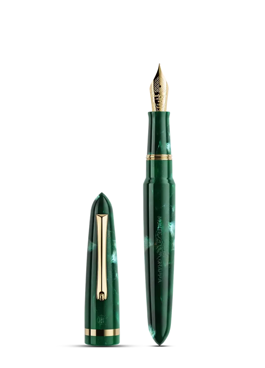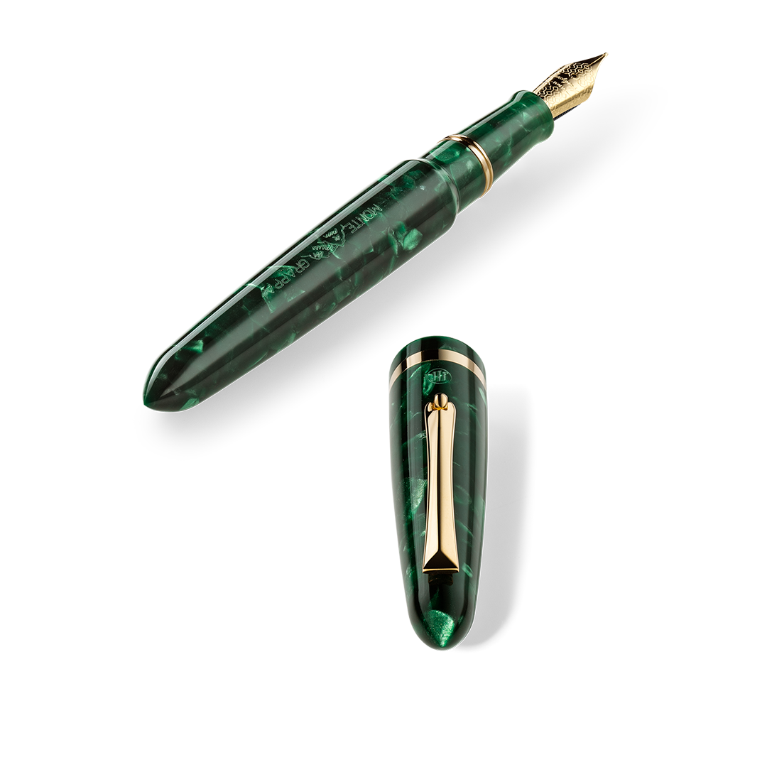 Our 1928 ‘touring’ logo was introduced to denominate origin on Italy’s most sought-after pens. Diamond engraving reproduces the first recorded use of the Montegrappa name.