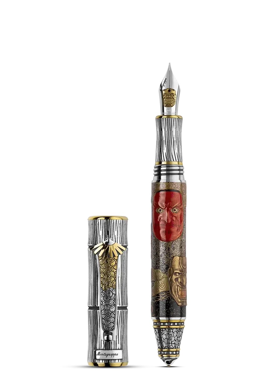 Un caractère extraordinaire. Les masques du théâtre Nô véhiculent des émotions complexes et une présence surnaturelle. Hannya, Shishiguchi et Shintai sont des exemples de cet art, réalisés en or 18 carats bicolore.