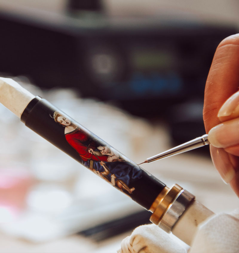 Cette collection, au nom prestigieux, fait appelle à la maestria absolue de l’Atelier artisanal de Montegrappa. Notre laboratoire est spécialisé dans la création d’objets exclusifs pour des commanditaires privés dont la réalisation peut demander plusieurs centaines heures de travail point artiste.