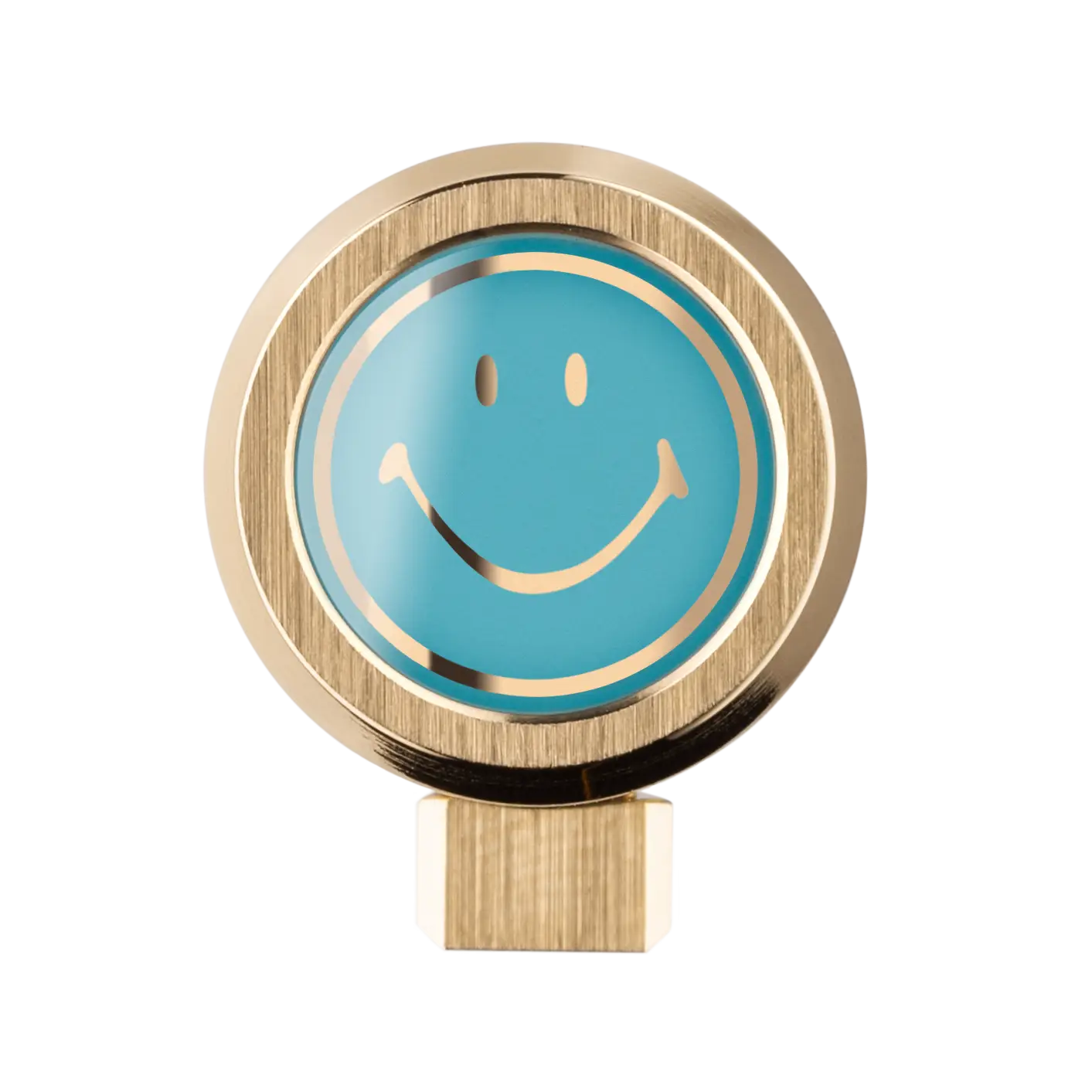 Si le cuivre brillant et les couleurs vives de l'émail ne sont pas la recette du bonheur durable, le symbole mondial de la positivité lui l’est assurément. Le visage radieux du Smiley® propage des ondes positives partout où il va. Son audacieuse allure Pop Art est consolidée par sa robustesse: chaque ligne dorée est découpée avec précision en utilisant le fraisage à commande numérique, un nouveau processus qui fait ses débuts avec notre charismatique silhouette Zero.