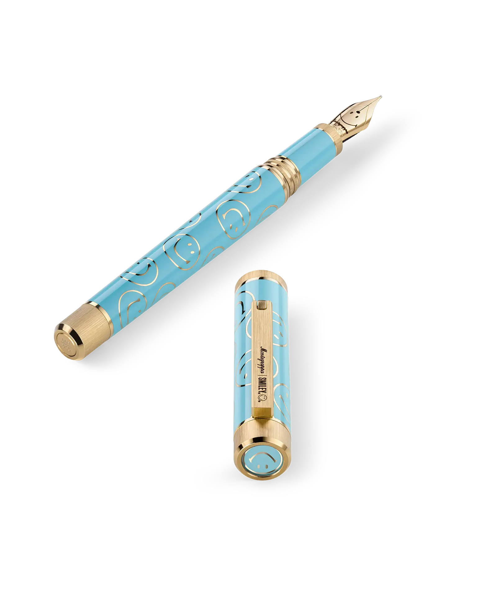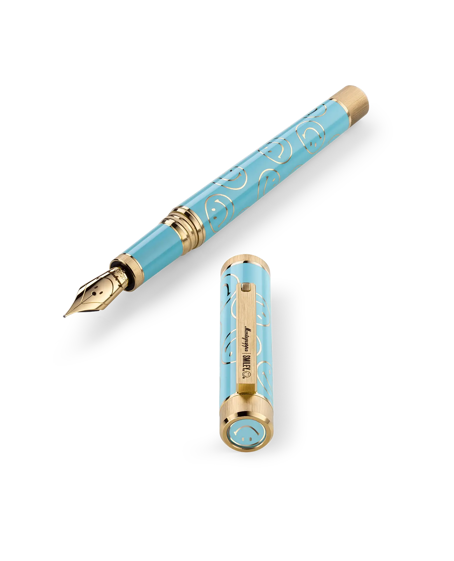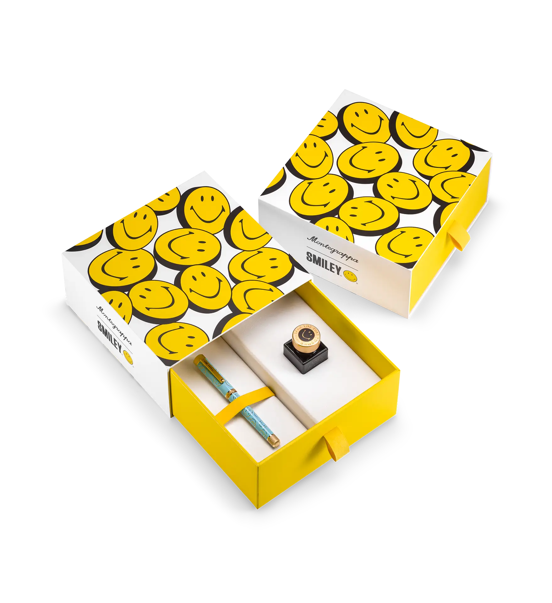 Une dose extra de bonne humeur accueille chaque jour les utilisateurs du stylo plume : un large sourire est gravé sur une plume en Or jaune 14K. Alimentez-la – ainsi que votre imagination – avec l’encre édition spéciale Smiley®. (Également vendue séparément).