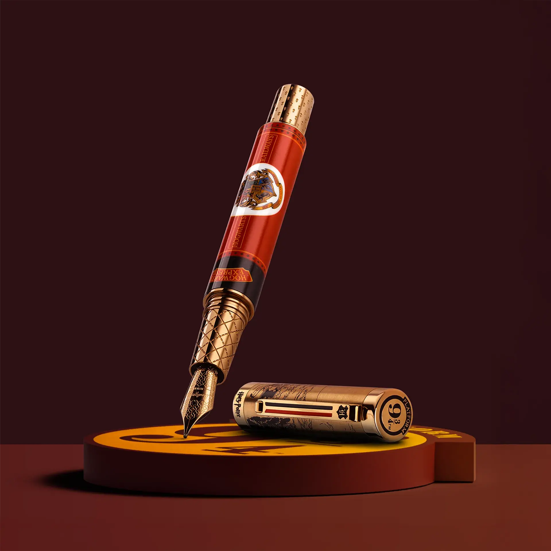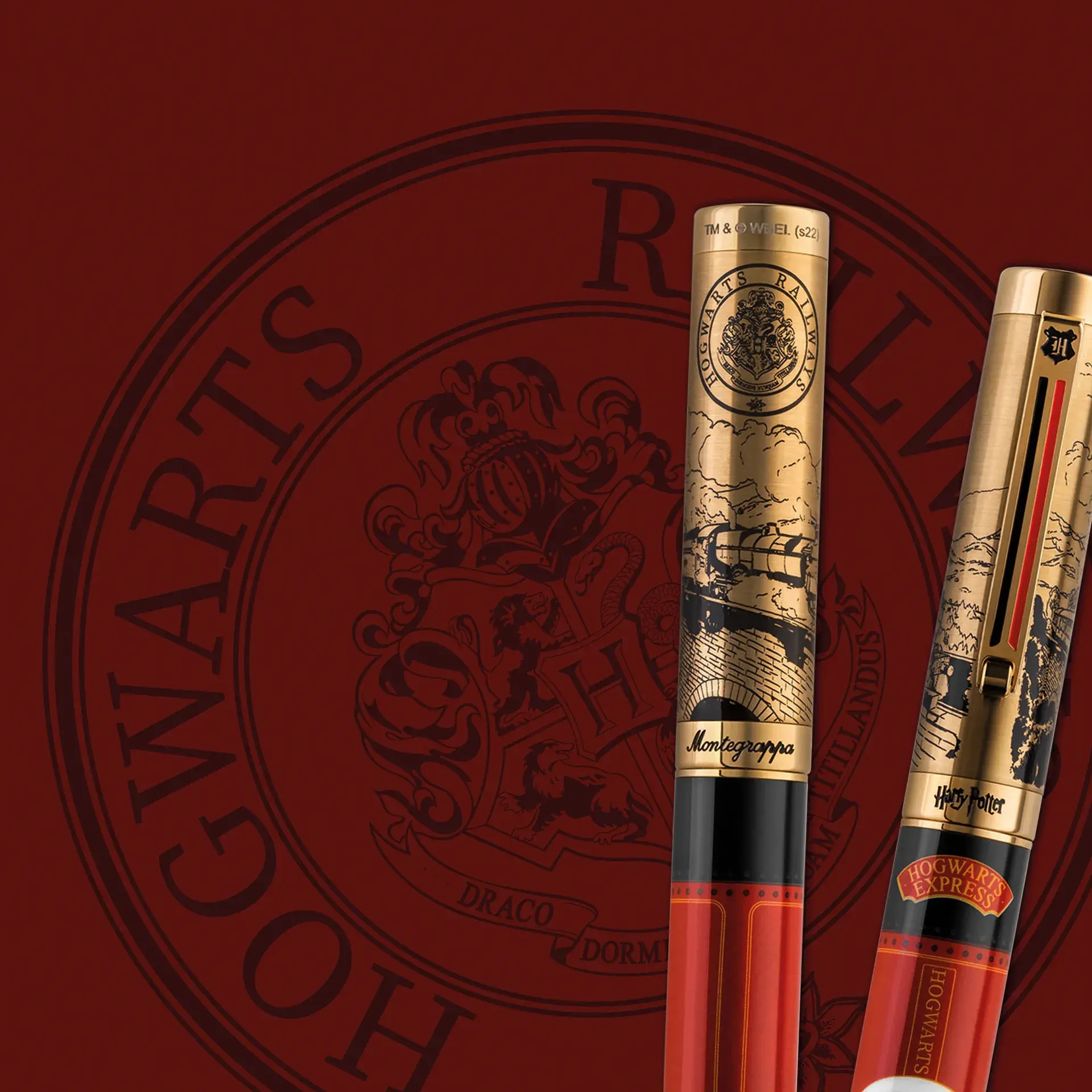 Rouge écarlate, noir et or pour rappeler la plus magique des locomotives, celle du célèbre Poudlard Express qui est gravé sur le capuchon en acier doré.