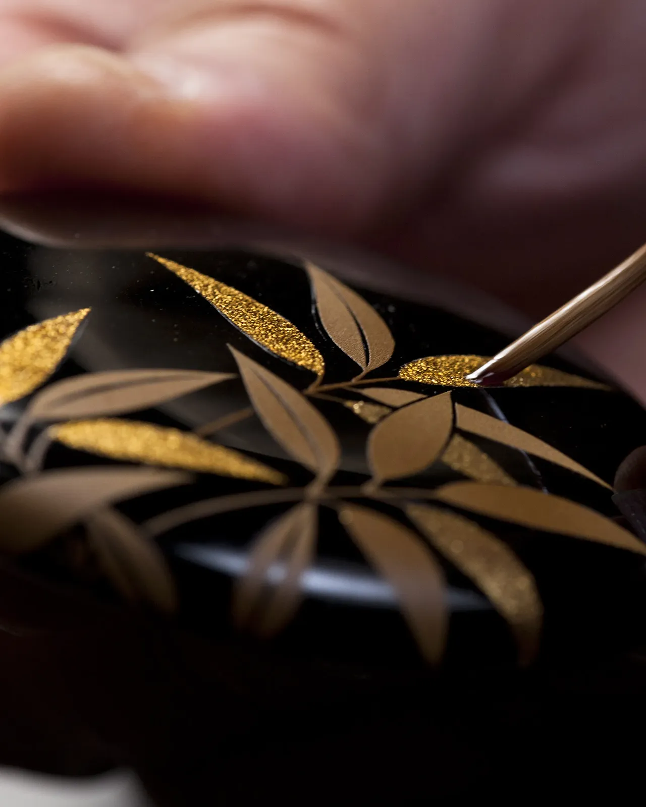 Une collaboration avec les meilleurs représentants de l’art de urushi and maki-e de Kyoto qui s’inspire des croyances traditionnelles sur la chance et la prospérité. Des artistes peintres saupoudrent d’argent et d’or une série de compositions exclusives réalisées dans atelier qui pratique cet art depuis 1661. Bambou, éventails pliants et tourbillons font partie des éléments qui prennent vie grâce à la fonte à la cire perdue, au vermeil et à l’émaillage à la main.