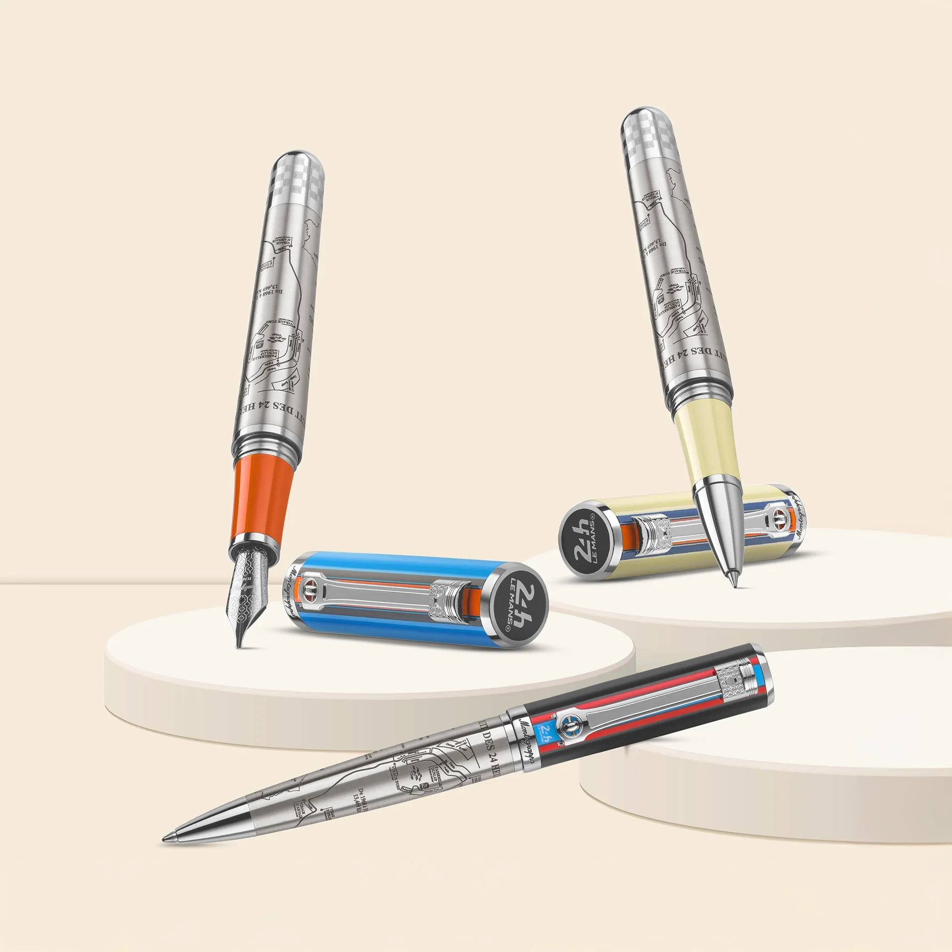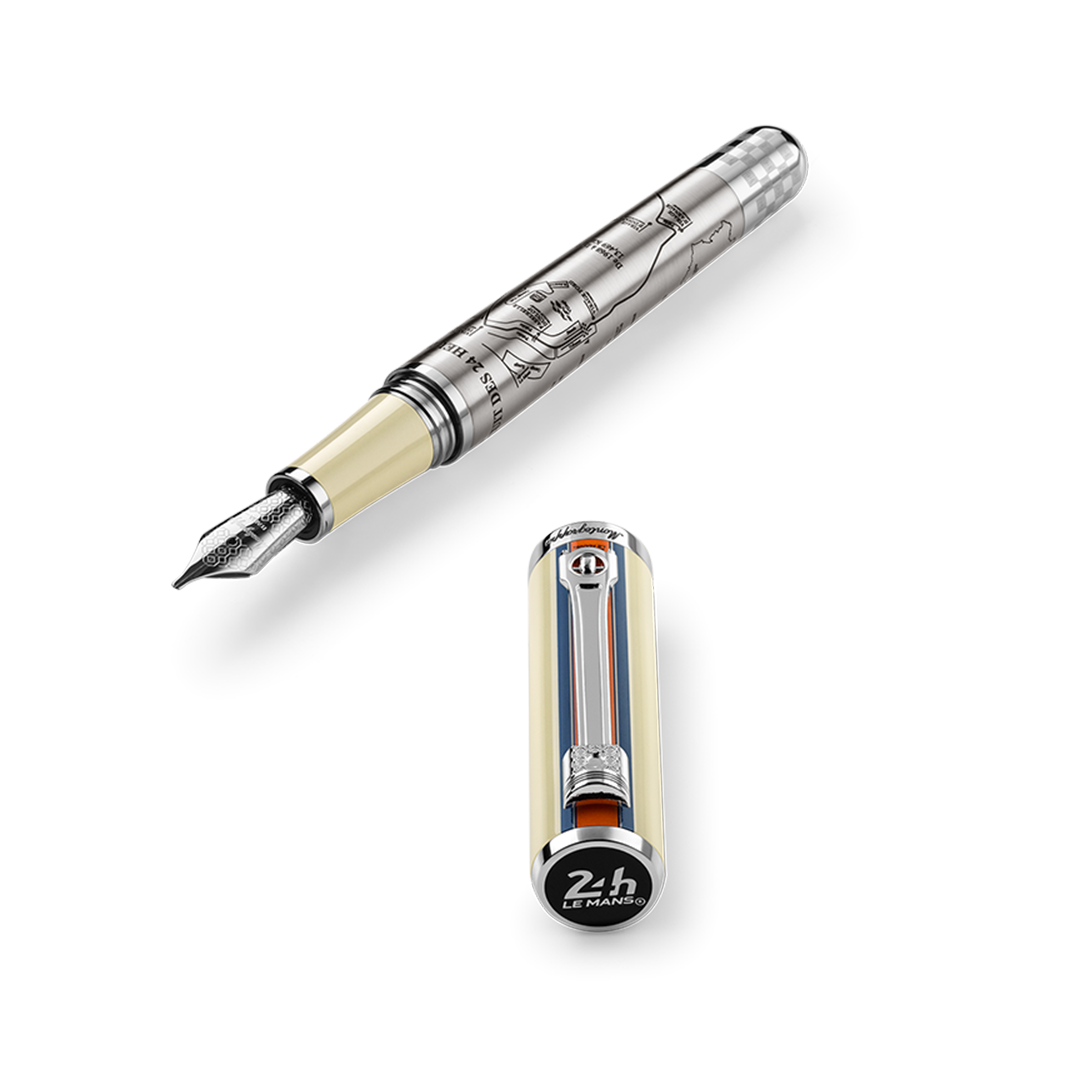 Un étui de voyage en acier accompagne chaque instrument d’écriture : stylo plume, stylo bille rotatif ou roller. Choisissez le mode d’écriture qui convient le mieux à votre allure.
