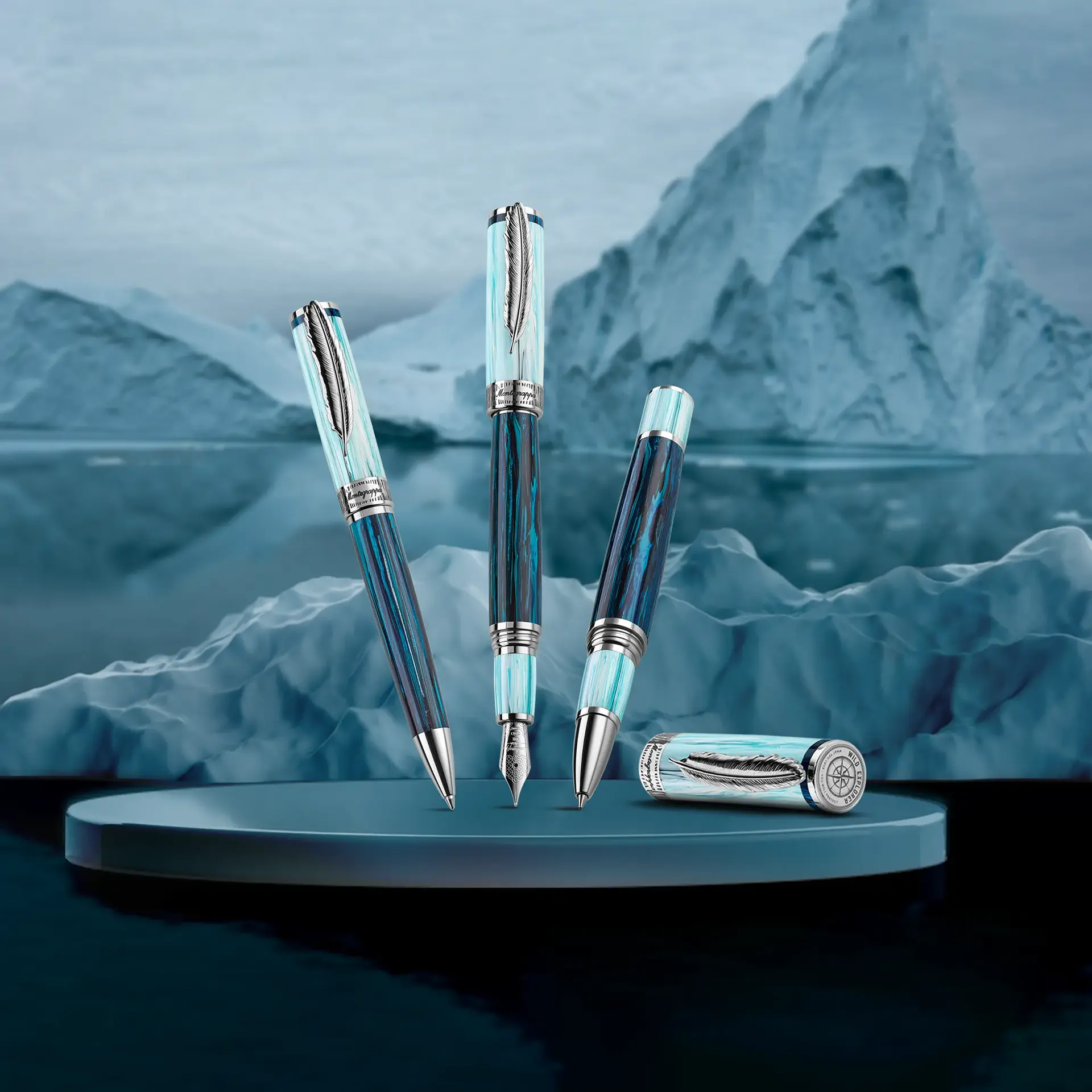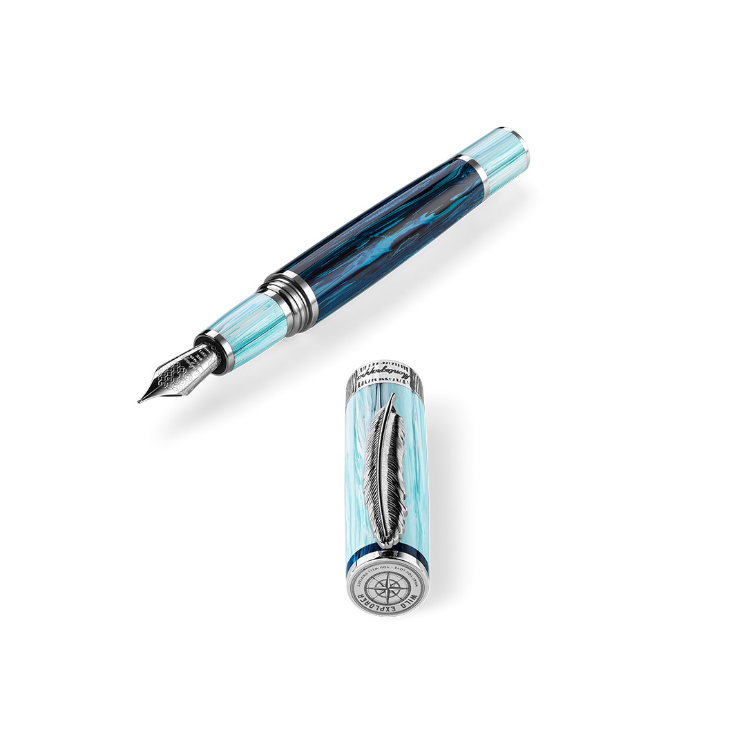 La Montegrappite bicolore représente les saisons en Arctique avec ses impressionnantes nuances de bleu. Nous fabriquons notre résine artisanalement en utilisant les chutes de production afin de réduire au maximum le gaspillage de matériaux.