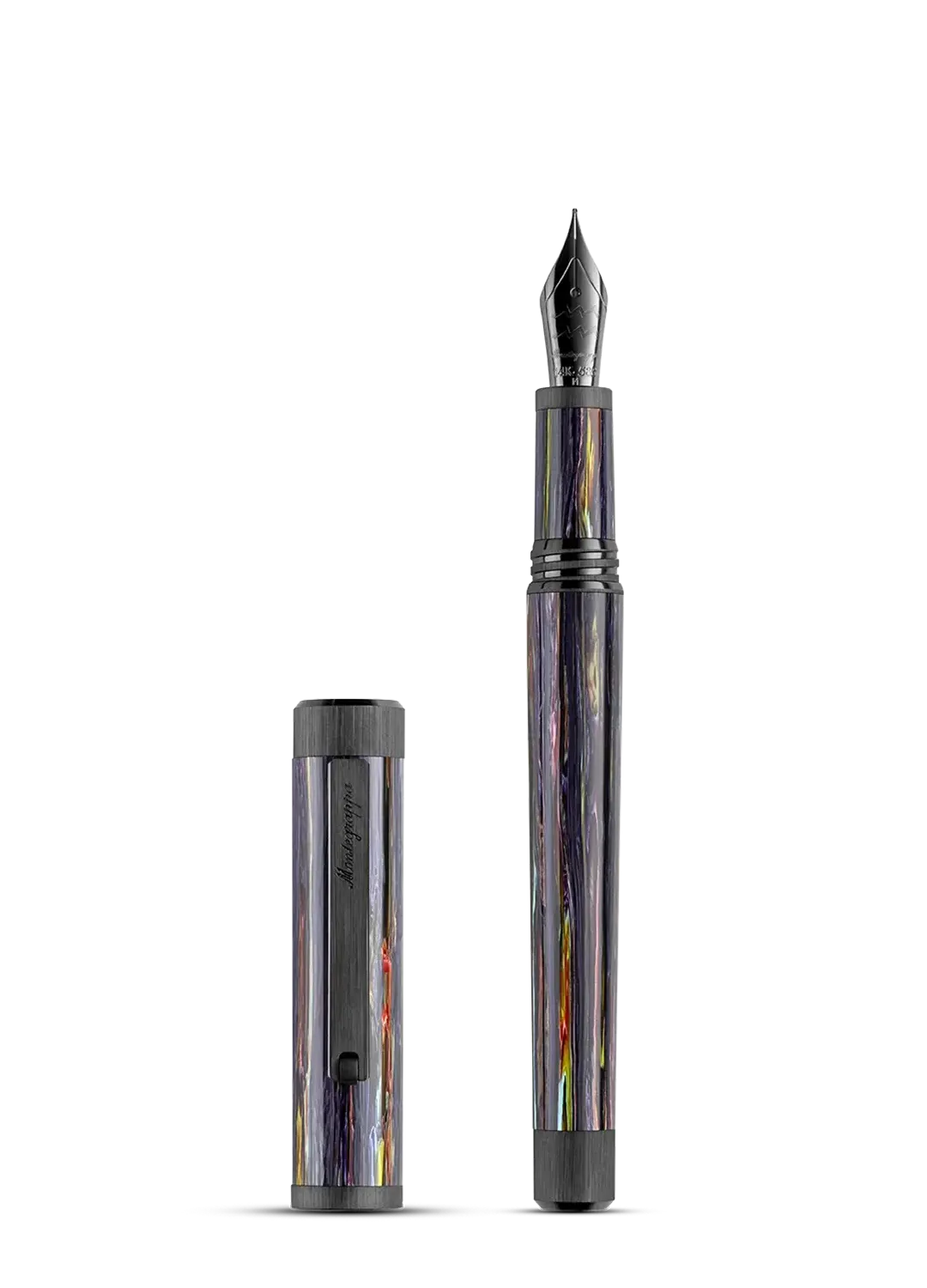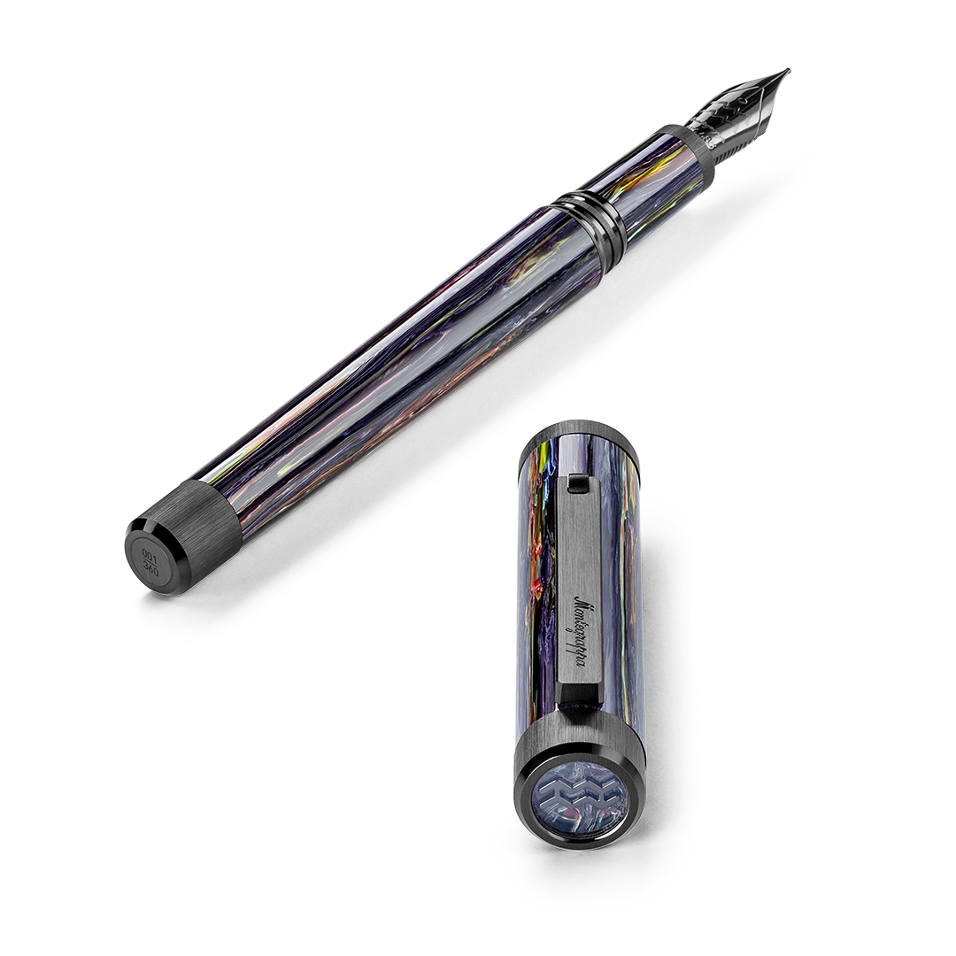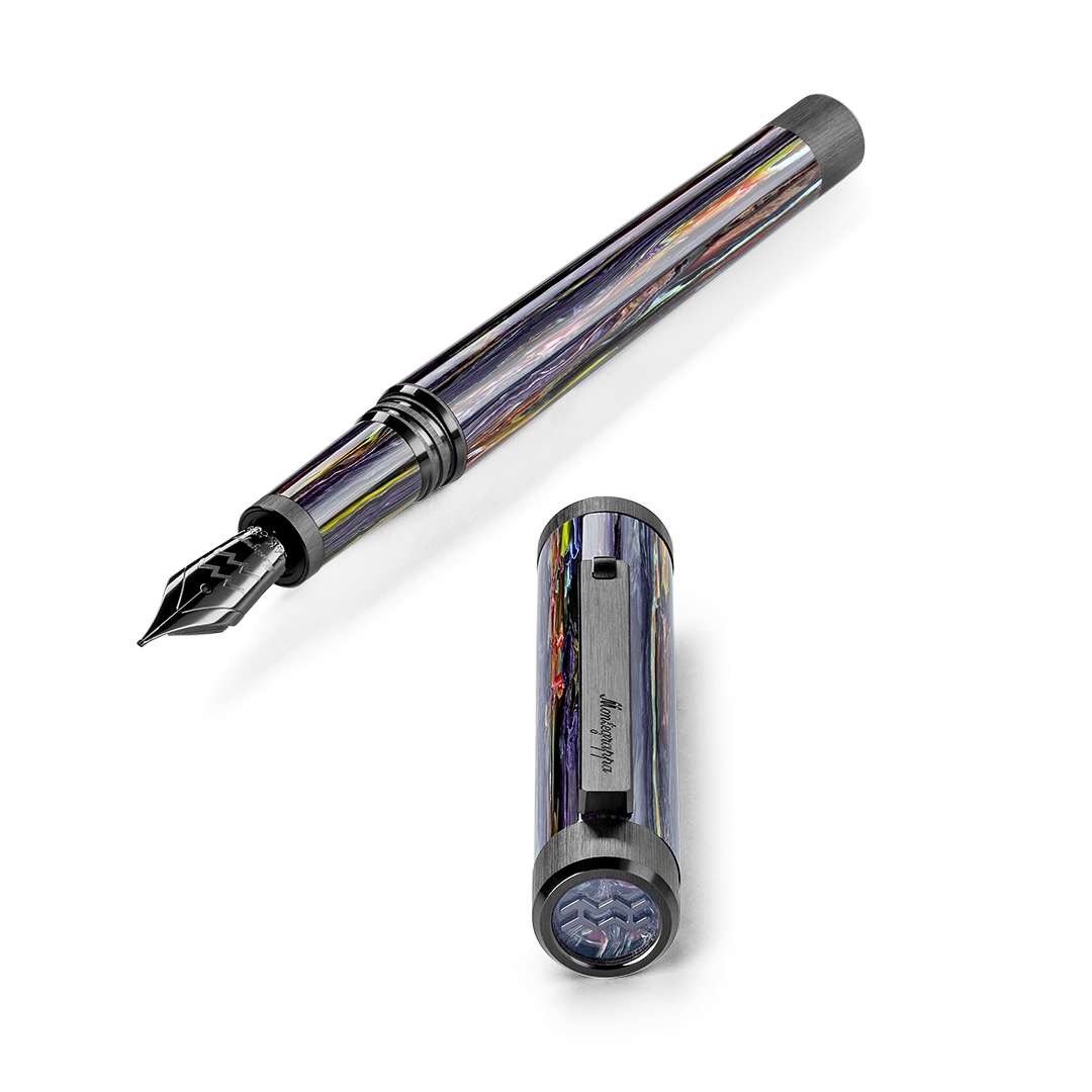 Le mélange en petite quantité de résines colorées donne vie aux trames complexes de Montegrappite que seule la nature est capable de concevoir. L'équilibre cosmique joue un rôle dans leur création : la production artisanale permet de limiter le gaspillage et de réutiliser les chutes pour créer de nouveaux mélanges.