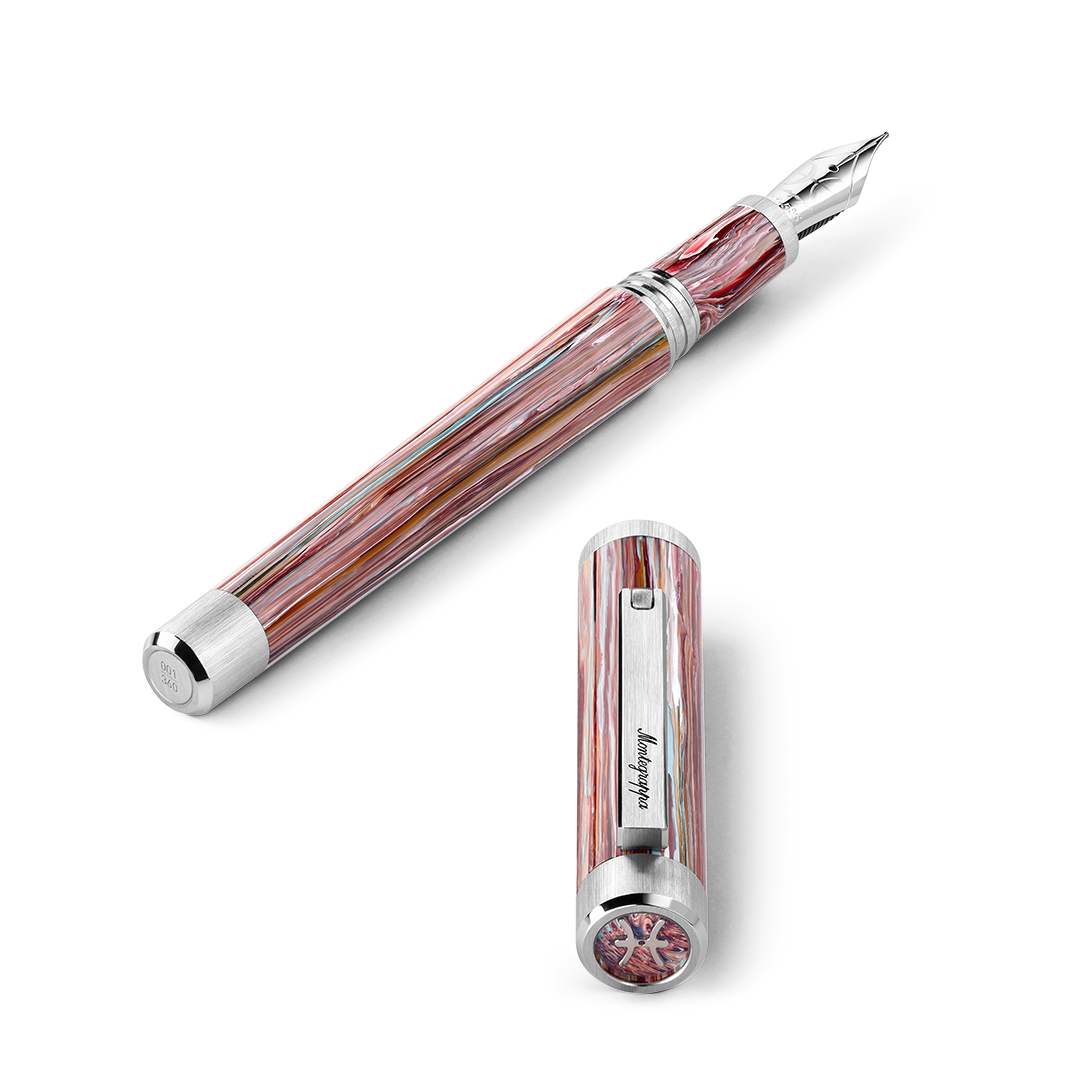 Le mélange en petite quantité de résines colorées donne vie aux trames complexes de Montegrappite que seule la nature est capable de concevoir. L'équilibre cosmique joue un rôle dans leur création : la production artisanale permet de limiter le gaspillage et de réutiliser les chutes pour créer de nouveaux mélanges.