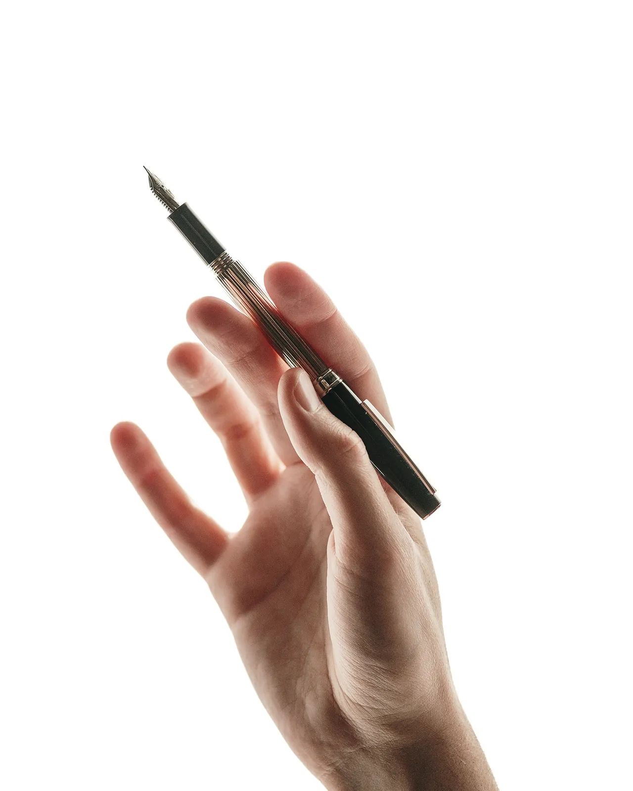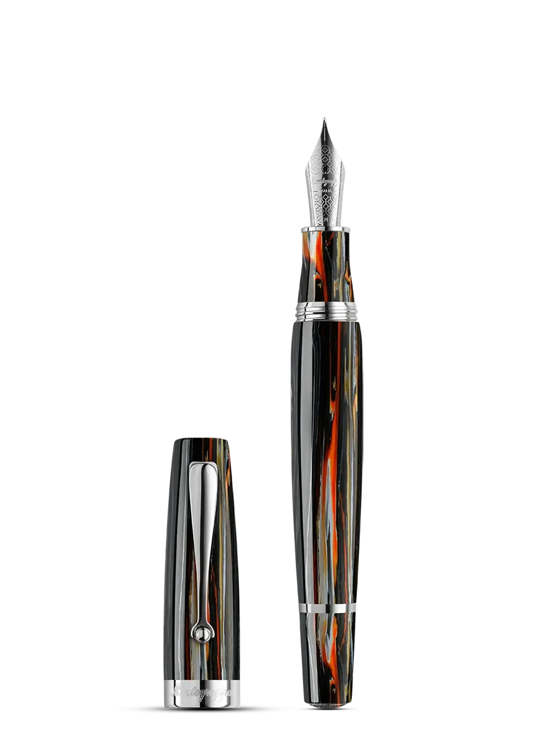 Se non ci fosse un tocco di colore, non sarebbe una Montegrappa! Raggiungi l’armonia con la nostra tavolozza di acrilici moderni. Scegli la tinta unita o gli audaci abbinamenti duetto in ottone placcato palladio in stile gessato.