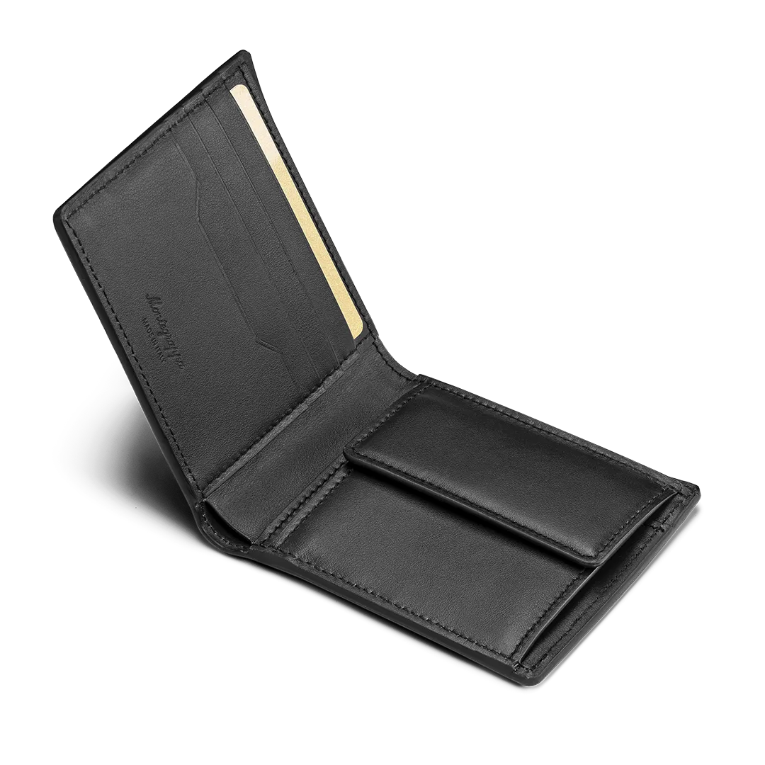 Signet Series Coin Case Wallet, Pelle liscia nera