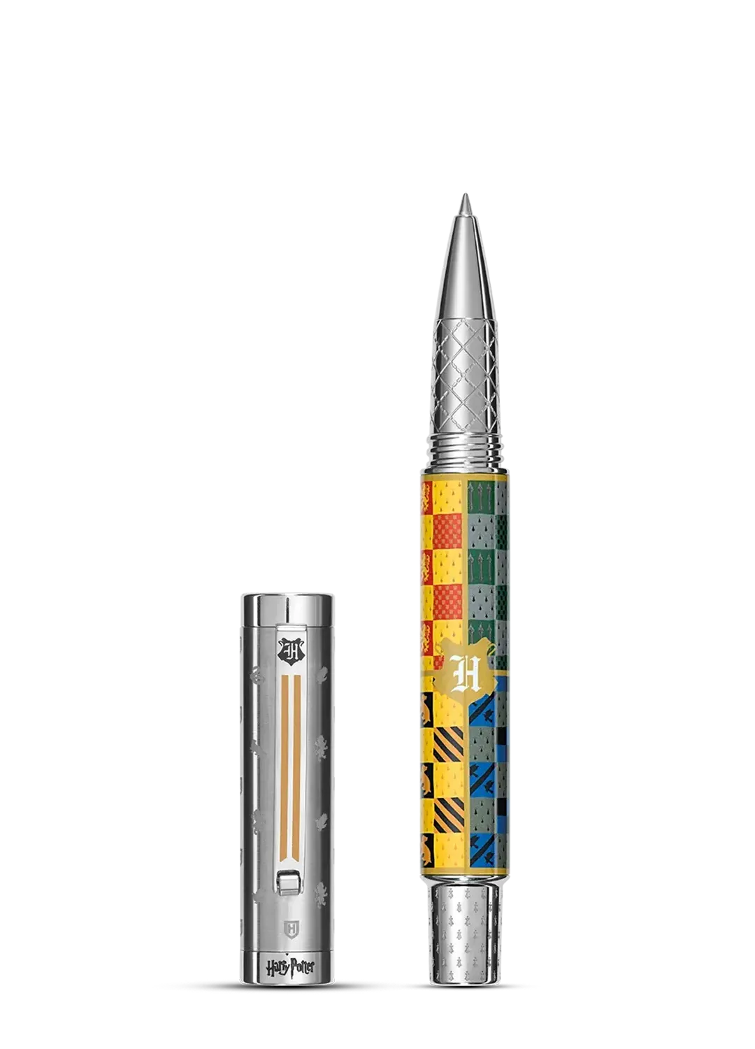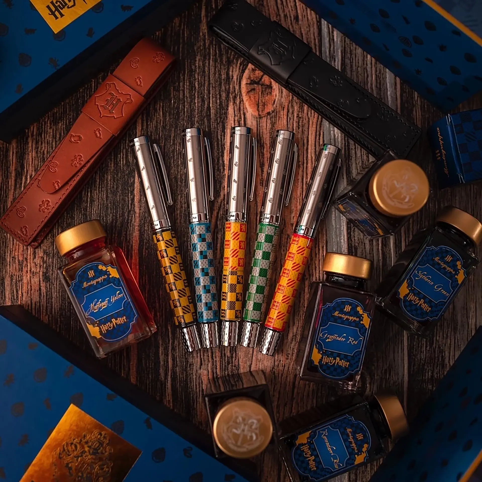 Harry Potter: House Colours riassume in sé le tradizioni e i rituali di Hogwarts con straordinaria fedeltà e cura per i dettagli. Leone, corvo, tasso, serpente… mascotte, simboli e colori delle quattro case rivali si intrecciano in ogni elemento del design. Lo stemma della scuola e due eleganti strisce decorative impreziosiscono i fermagli da taschino a molla. I colori di Hogwarts avvolgono un cofanetto deluxe con dettagli in lamina a rilievo, aggiungendo un tocco di magia alla Harry Potter.
