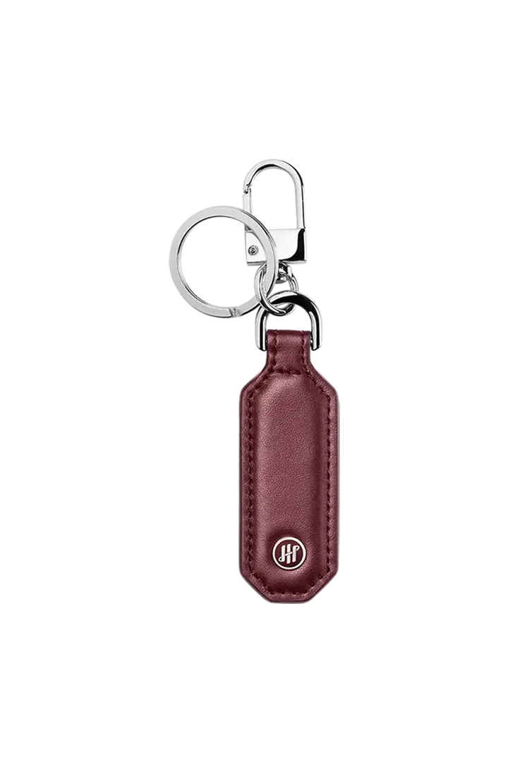 Signet Series Rectangular Keyring, Pelle liscia bordeaux