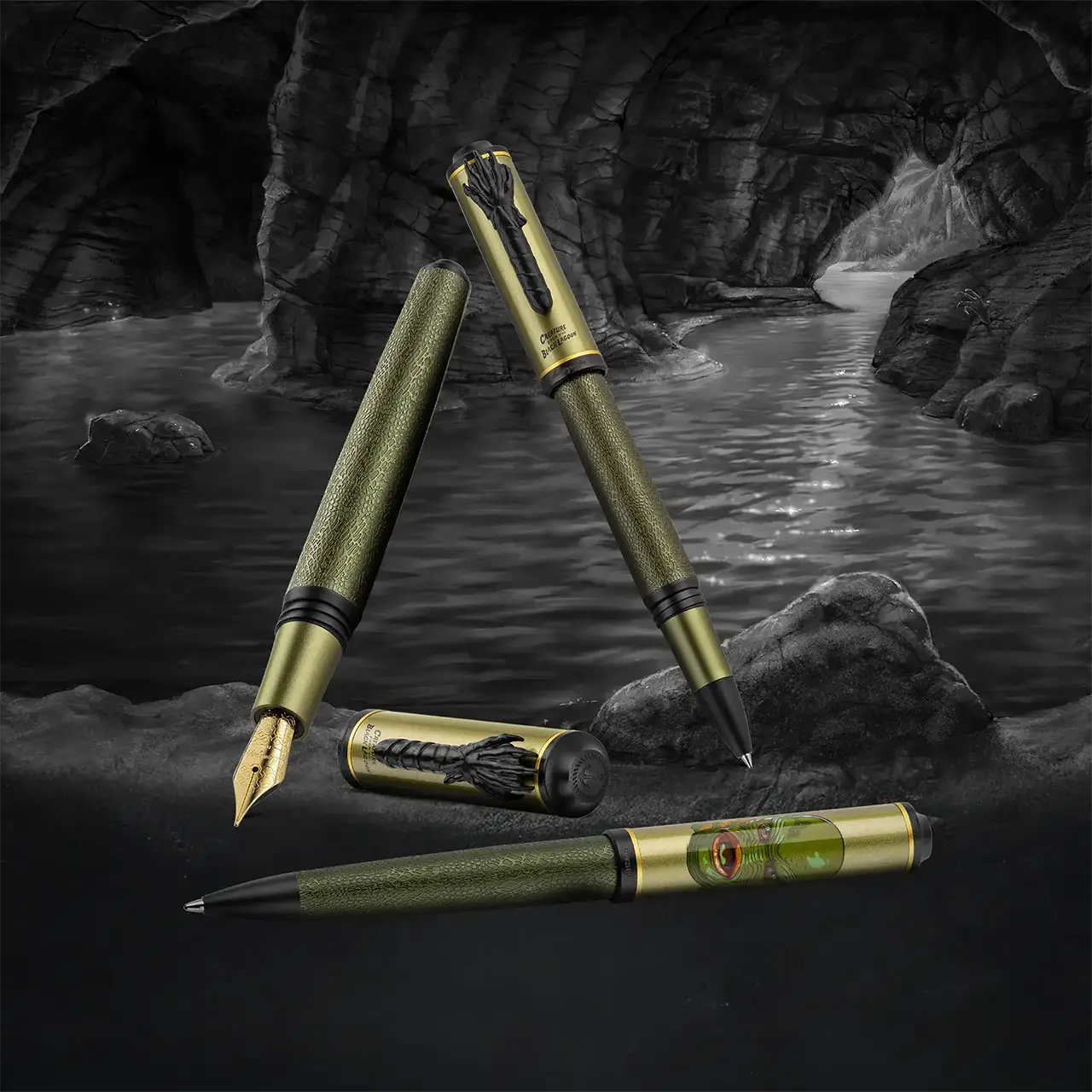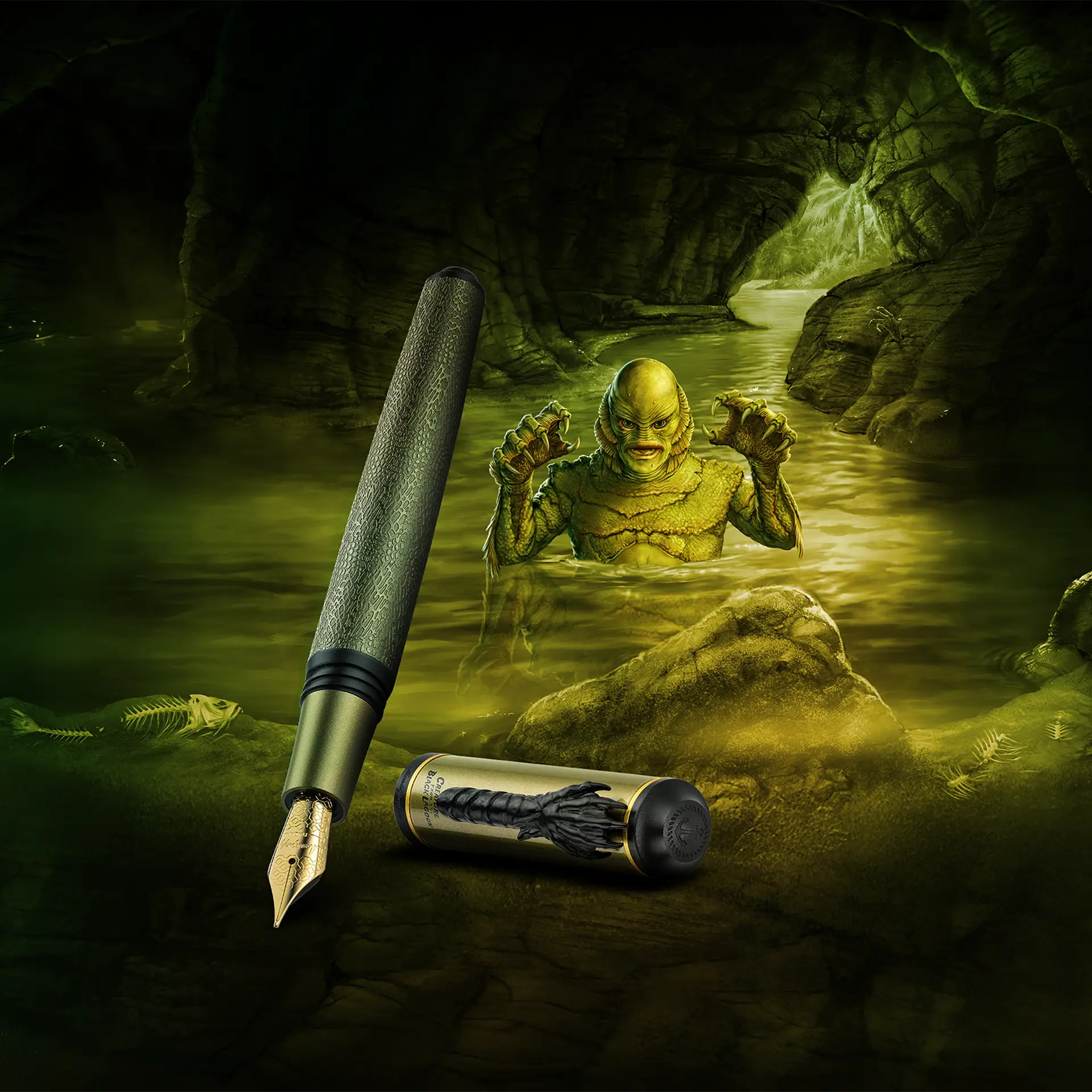 Dalle profondità oscure riemerge Creature of the Black Lagoon, portando con sé il mistero e il fascino primordiale degli abissi. Corpo verde oliva, texture squamosa e clip ad artiglio rievocano la bellezza inquieta del mostro anfibio, trasformando ogni parola in un eco che risale dal fondo della leggenda.