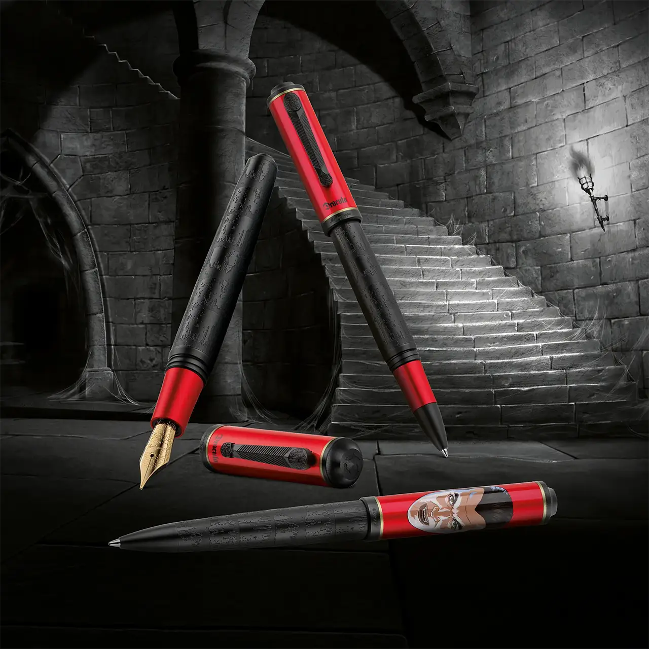 Dal suo debutto cinematografico nel 1931, il Conte Dracula incarna il fascino oscuro e immortale del vampiro. Corpo nero, pipistrelli svolazzanti e il volto penetrante del conte sul cappuccio cremisi riportano in vita una leggenda che continua a ossessionare le notti degli scrittori.