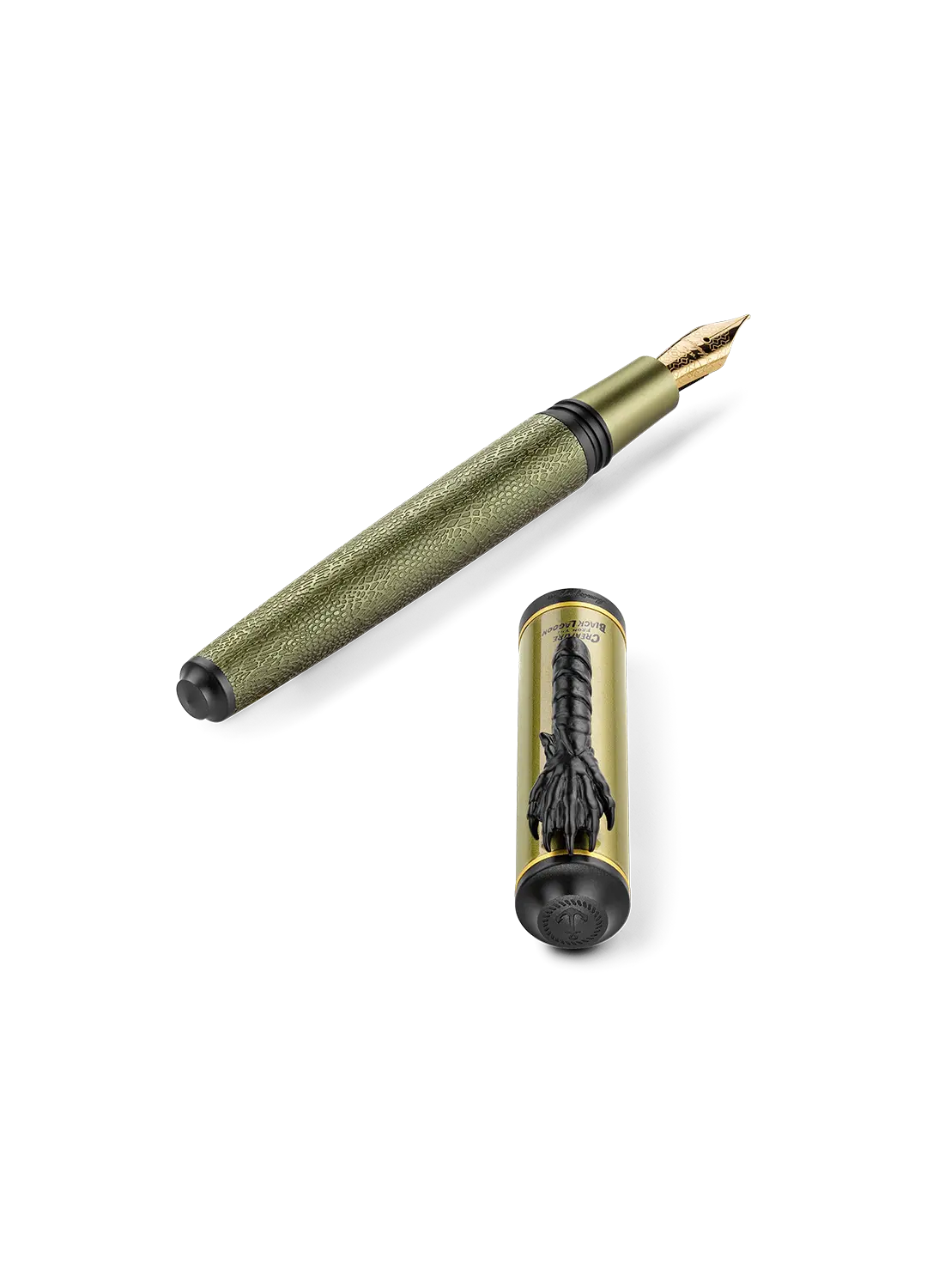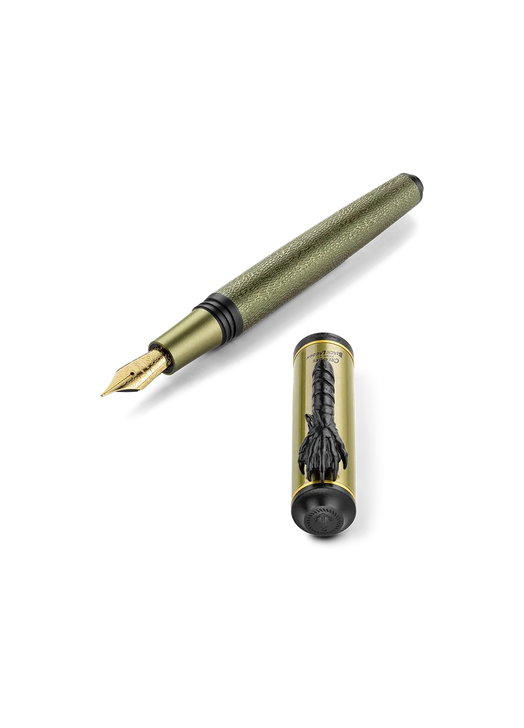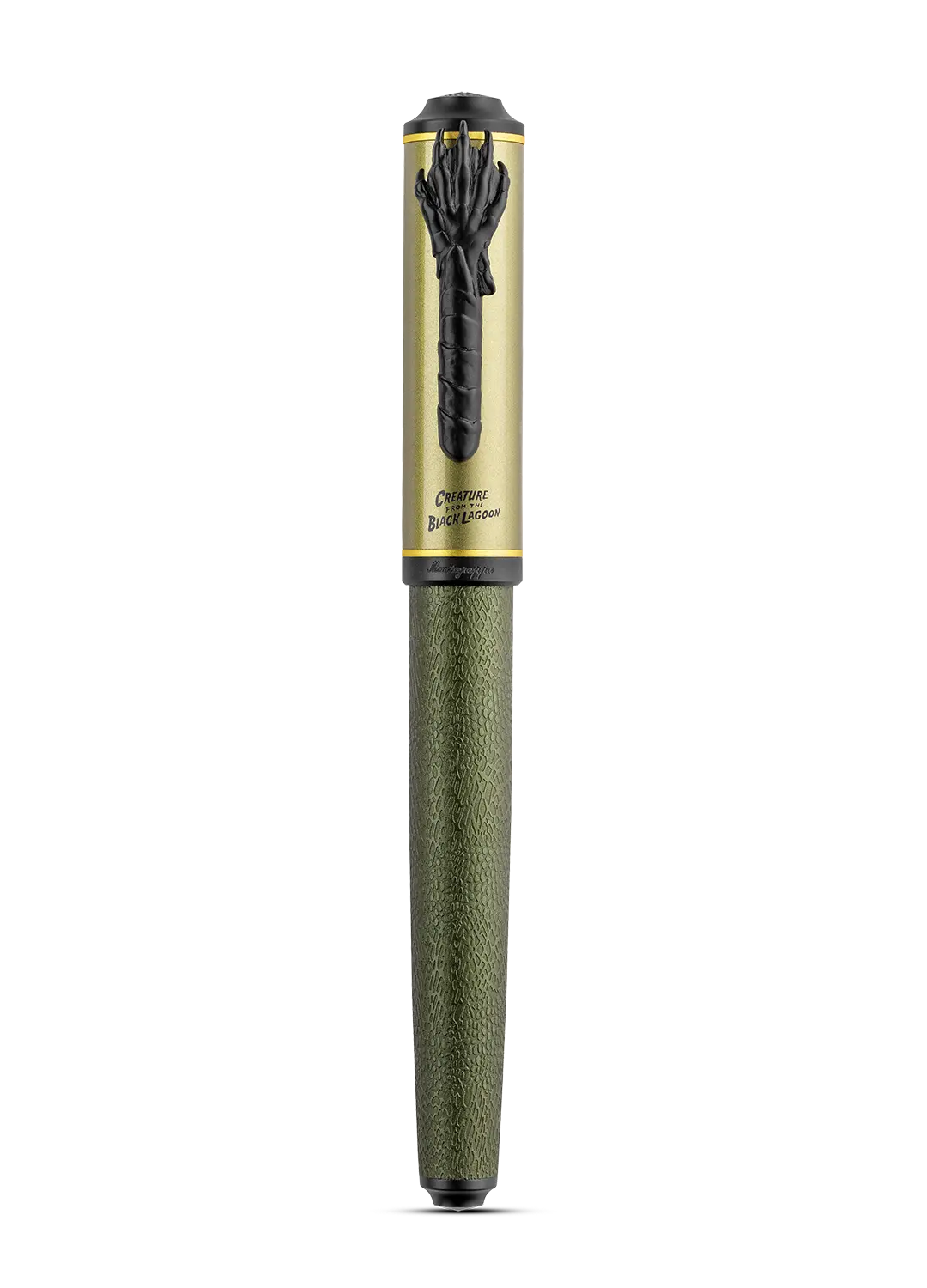 Dalle profondità oscure riemerge Creature of the Black Lagoon, portando con sé il mistero e il fascino primordiale degli abissi. Corpo verde oliva, texture squamosa e clip ad artiglio rievocano la bellezza inquieta del mostro anfibio, trasformando ogni parola in un eco che risale dal fondo della leggenda.